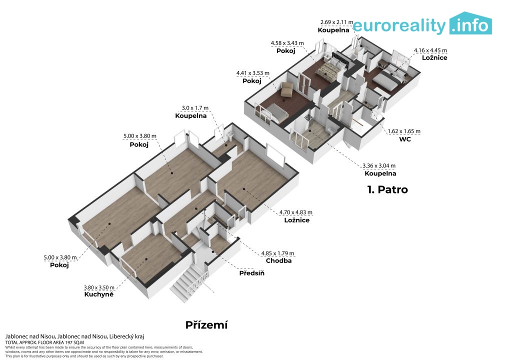 Prodej vily / rodinného domu – centrum Jablonce nad Nisou, ul. Podskalí Nabízíme k prodeji prostorný rodinný dům ve vyhledávané lokalitě centra Jablonce nad Nisou, ulice Podskalí. Nemovitost představuje atraktivní příležitost pro vícegenerační bydlení, bydlení větší rodiny nebo jako spojení podnikání a bydlení v jedné budově. Dům je určen k celkové rekonstrukci, umožňuje však široké možnosti úprav a rozšíření. Dispozice a možnosti využití: V domě se nachází dvě samostatné bytové jednotky 3+1: Přízemí – 3+1, 88,5 m² Patro – 3+1, 88 m² Možnost vybudovat třetí bytovou jednotku v suterénu ( 47 m²), případně využít tento prostor jako nebytový – ordinace, kancelář, studio apod. Byt v patře je možné rozšířit do půdního prostoru a vytvořit tak prostorný mezonet. Každá bytová jednotka má samostatné měření elektřiny. Oba byty disponují kuchyní, koupelnou a samostatným WC. Technické informace: Vytápění: Přízemní byt – plynový kotel Byt v patře – elektrické topení (nyní odpojeno) Dům je napojen na veřejný vodovod, kanalizaci, elektřinu i plyn. V roce 2022 vybudována nová vodovodní přípojka a nedávno byly vybudovány nové přívody elektrické energie Zastavěná plocha: 132 m² Celková obytná plocha: cca 218 m² Součástí je také menší pozemek za domem. Lokalita: Výjimečná poloha v docházkové vzdálenosti do centra města – pouze 5 minut chůze. Kompletní občanská vybavenost v bezprostředním okolí (školy, obchody, MHD, služby). Parkování je možné přímo před domem. Vhodné využití: vícegenerační bydlení bydlení spojené s podnikáním investiční projekt se třemi bytovými jednotkami zázemí pro ordinaci, kanceláře či služby Nemovitost nabízí mimořádný potenciál a variabilitu využití v žádané části Jablonce nad Nisou. Na vyžádání zašleme původní dokumentaci. Pro více informací nebo sjednání termínu prohlídky kontaktujte makléře.