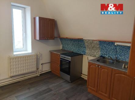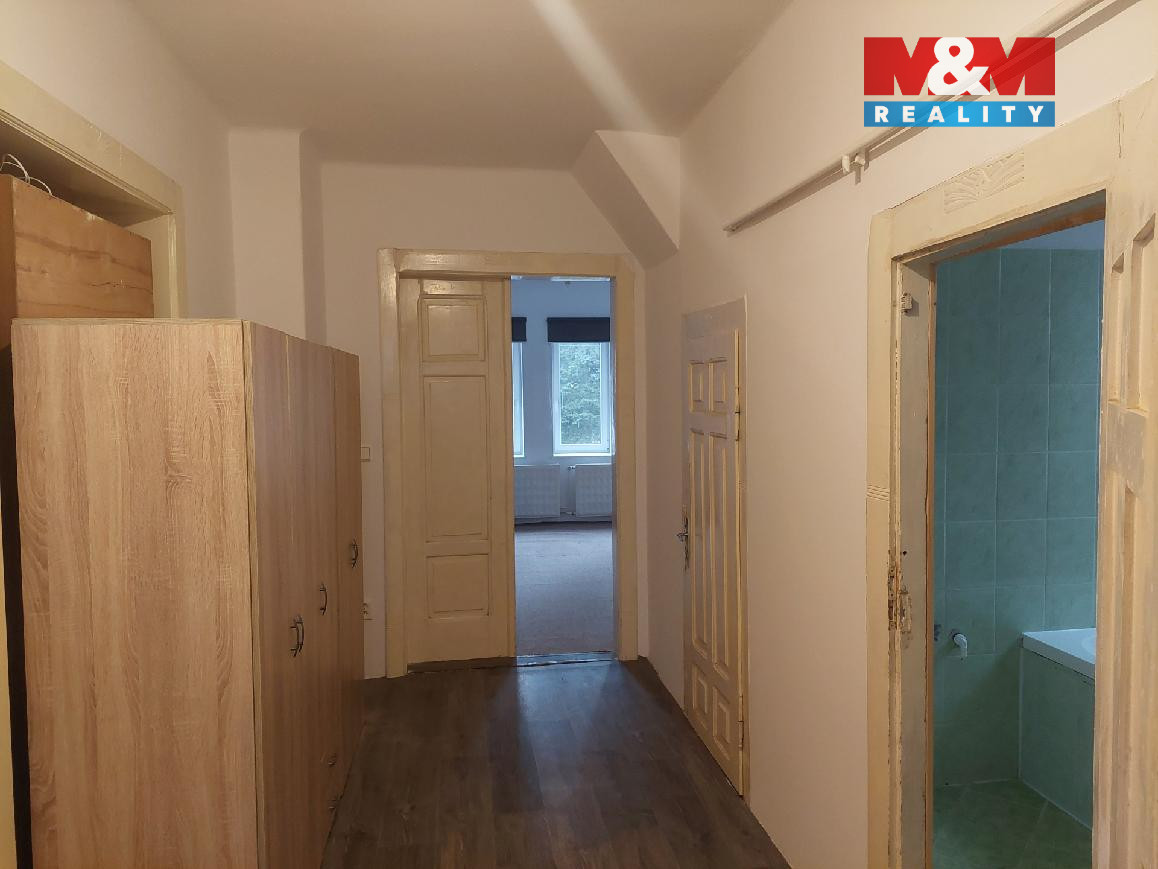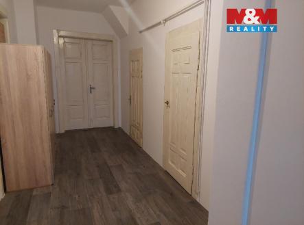 Pronájem bytu 3+1 o ploše 106 m2 ve druhém patře cihlového domu. K bytu náleží půda o ploše 88 m2 se vstupem přímo z předsíně bytu. Dispozičně se jedná o 3 prostorné pokoje, kuchyňský kout s jídelnou, podkrovní komora. Koupelna s vanou a WC. Byt k pronájmu se nabízí bez zařízení, v kuchyňském koutě zůstává linka a sporák. Nájem ve výši 14000,-- bez režií (voda, el. spol. prostor, odpad 3000,-- Kč, popelnice 1800,-- Kč na půl roku), elektřina a plyn přepisem na nájemce. Hradí se kauce ve výši 30000,-- Kč a provize RK. Byt k dispozici leden/26.