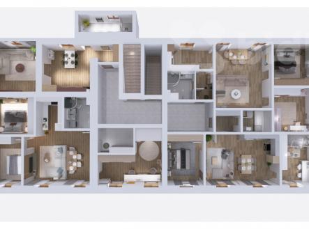 Ve výhradním zastoupení nabízím atrativní investiční nemovitost pro podnikání v centru obce Lvová - Jablonné v Podještědí. Dům s užitnou plochou 727 m2 a výměrou pozemku 1.059 m2, nabízí několik možností využití. V přízemí domu byla provozována resturace, (kuchyně, přípravny, zázemí, sociální zařízení) a prodejna. Celé přízemí lze dispozičně upravit a všechny prostory propojit pro zvětšení restaurace případně velkého obchodního prostoru. Dům je částečně podsklepen, sklep je suchý, má klenuté stropy a tři samostatné místnosti, které lze využít na vybudování dalšího obchodního prostoru (sklípek, salonek k restauraci, či wellness zóny). První patro 322,8 m2 je nyní celé volné, nabízí se tak možnost vybudovat prostory pro ubytování (penzion) či bydlení. Přikládáme zpracovanou vizualizaci na výstavbu 4 bytových jednotek (dispozice 1x 2+1, 2x 3+kk, 1x 3+1). Půdní prostor je vhodný k vybudování další obytné části. Dům prošel částečnou rekonstrukcí v letech 2012 - 2023. V roce 2023 došlo k opravě střechy a výměně střešní krytiny. Do domu je zavedena vodovodní přípojka městského řadu, napojena je i voda z vlastní studny a odvod odpadu do jímky. Garáž není součástí prodeje. Výborná dopravní obslužnost - dům je v blízkosti hlavního tahu Liberec - Nový Bor, bus 7 min. chůze, vlaková zastávka pouhých 15 min. chůze, hraniční přechod Petrovice 7,5 km. V těsné blízkosti se nachází zámek Lemberk (23 min. chůze), Zdislavina studánka a další. Veškerá občanská vybavenost je v obci Jablonné v Podještědí cca 3 km (ZŠ a MŠ, supermarkety, městský úřad, lékaři, pošta.). Tato nemovitost nabízí zajímavou podnikatelskou příležitost. V případě realizace výstavby bytových jednotek může zaujmou i investory. S koupí nemovitosti budou naší společností dodány právní a finanční služby. V případě více zájemců bude nemovitost nabízena formou aukce. Pro domluvení prohlídky a více informací k nabízené nemovitosti kontaktujte makléřku.