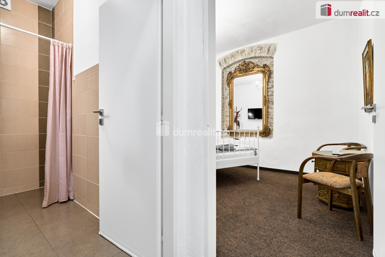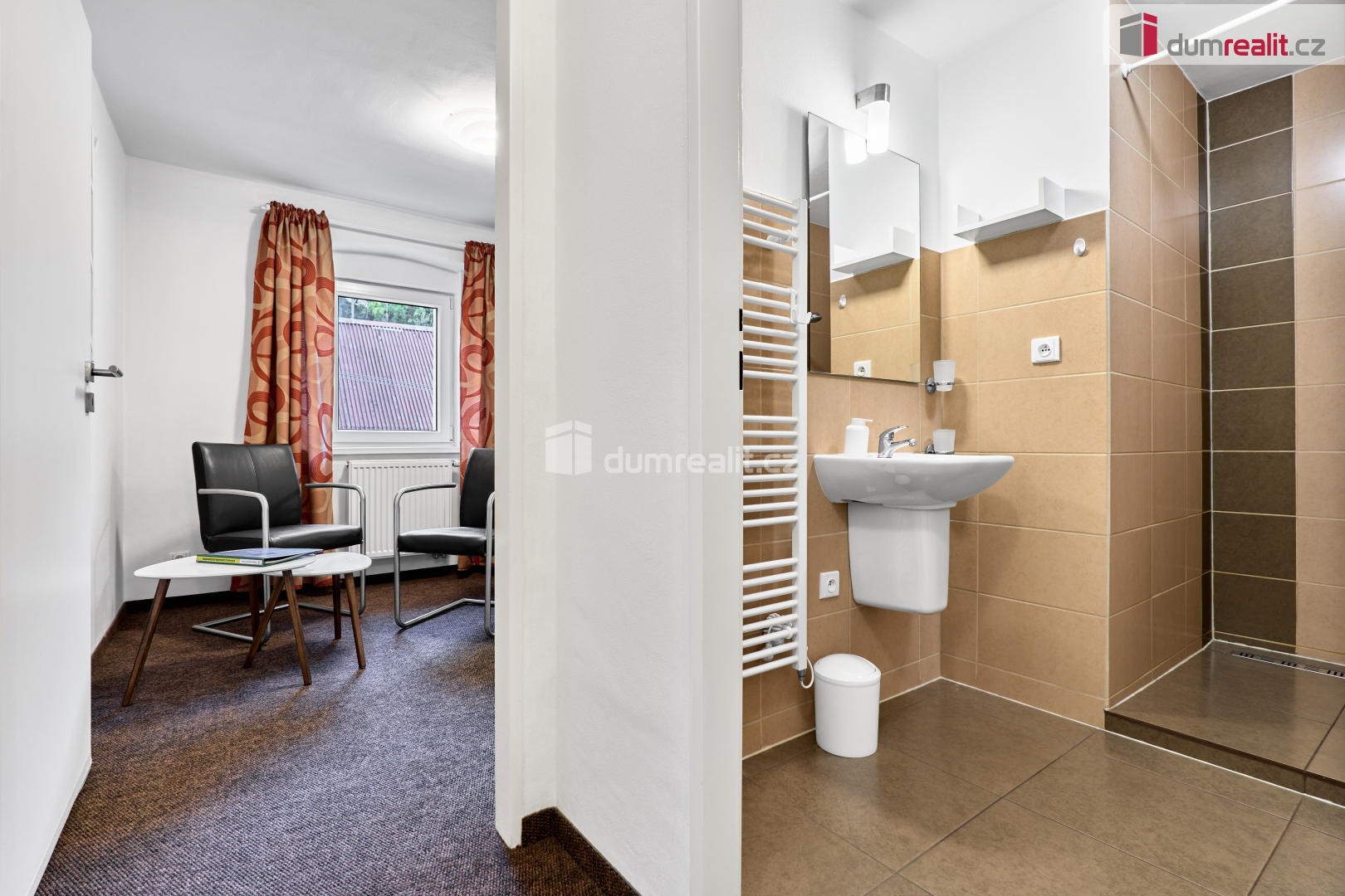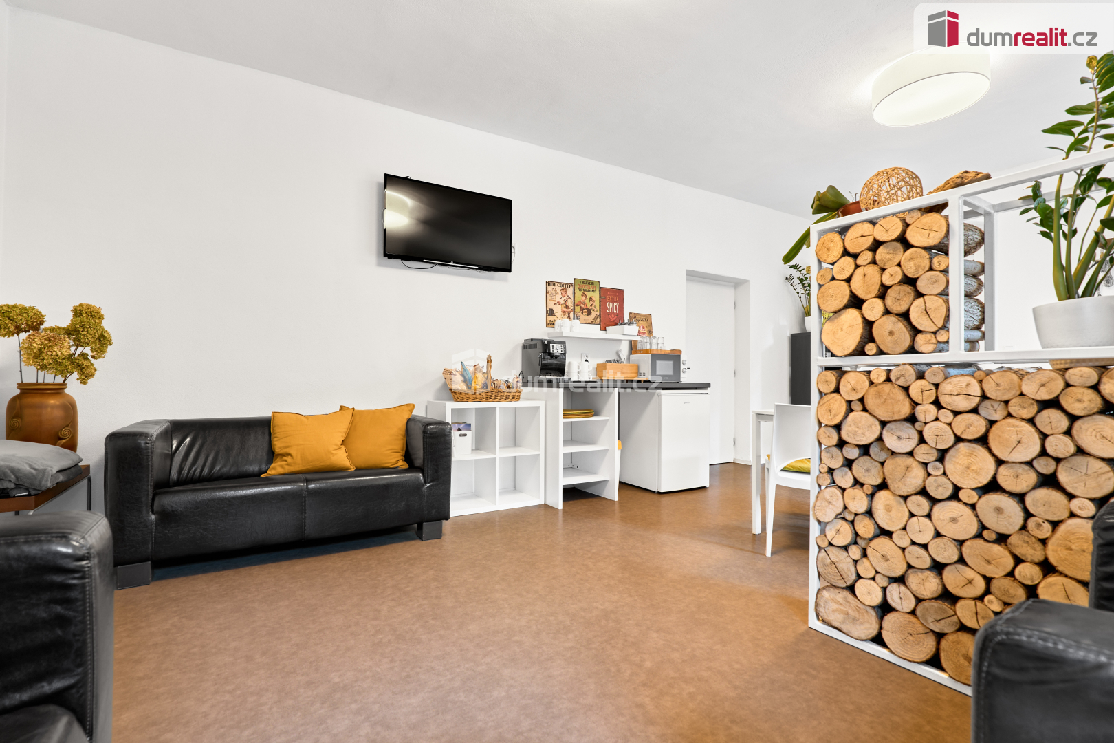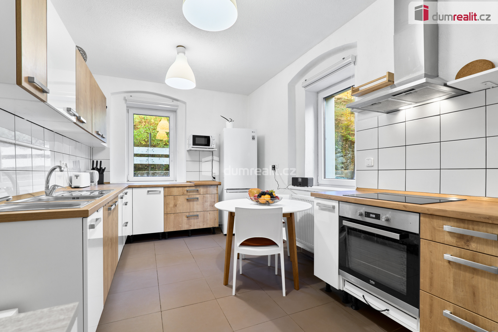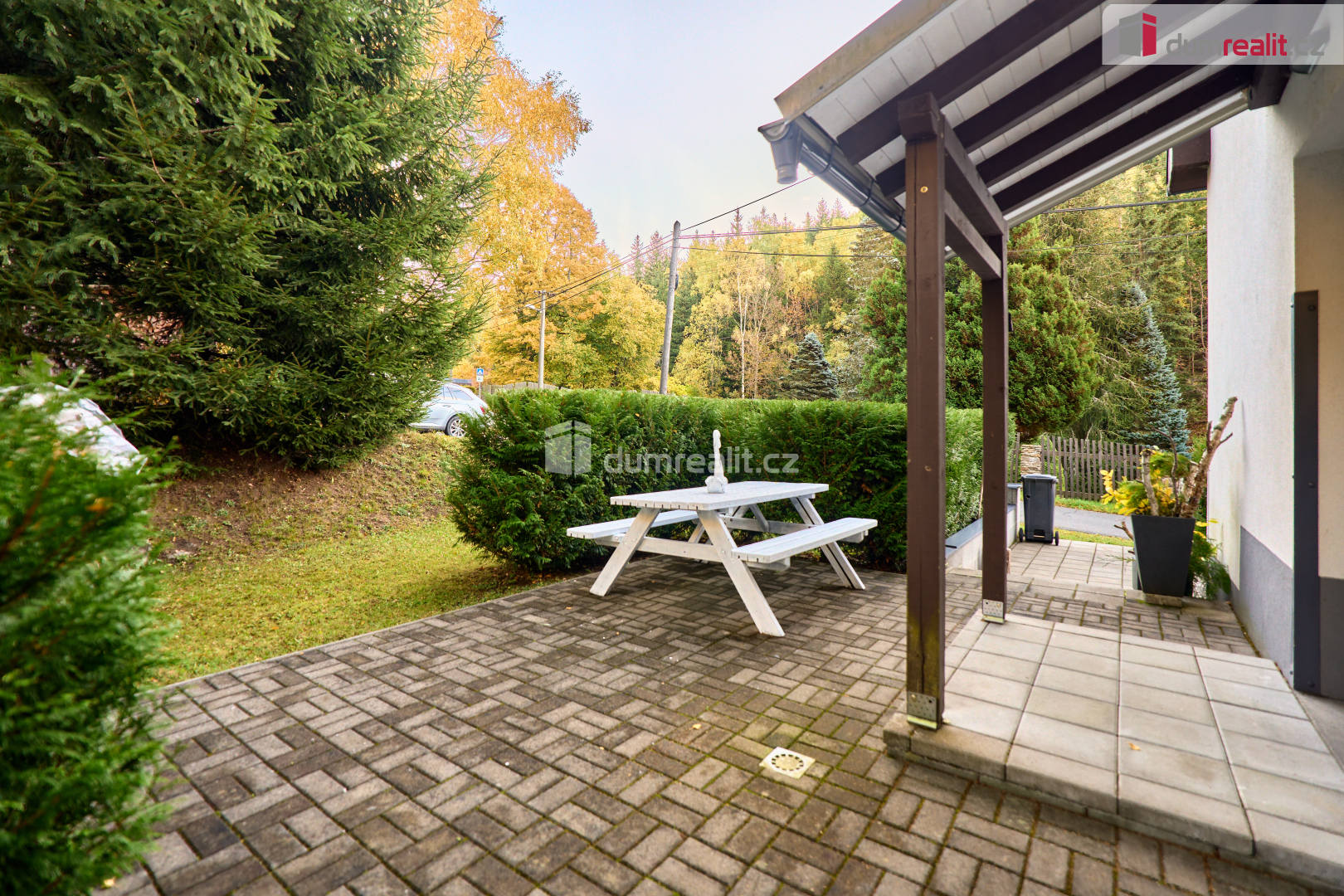 V exkluzivním zastoupení nabízíme k prodeji penzion v Krušných horách, v nádherné lokalitě u lesa, v těsné blízkosti lázeňského města Jáchymov a neustále se rozvíjejícího turistického areálu Klínovec. Částečně podsklepený objekt je po celkové rekonstrukci vč. veškerých rozvodů, zateplení a protiradonového opatření. Vytápěn je automatickým kombinovaným kotlem s podavačem na pelety, pitná voda je z vlastního vrtu a odpady jsou svedeny do vlastní ČOV. V přízemí domu je společenská místnost a jídelna v jednom, kuchyň, spíž, technická místnost, WC rozdělené na dámské a pánské, 1 samostatný pokoj a 1 pokoj s vlastním sociálním zařízením. V 1. patře jsou 3 samostatné pokoje se sociálním zařízením (3 a 4-lůžkové) a jeden soukromý apartmán se dvěma pokoji a samostatným sociálním zařízením. Z tohoto patra je také vstup na půdu, která je v současnosti využívána jako odkládací plocha, ale je zde dostatek prostoru pro vybudování dalších dvou pokojů. U domu je parkoviště, kůlna, venkovní terasa, dílna, úschovna lyží a kol, kůlna na pelety. Uvedená cena zahrnuje veškeré vybavení a zařízení domu (viz foto). Možnost financování hypotékou, kterou Vám rádi vyřídíme. Vzhledem k tomu, že před zadáním do inzerce nebyl vyhotoven PENB, je tato nemovitost v souladu s platným zákonem zařazena do energetické třídy G. Ev. číslo: 652867.