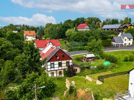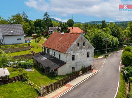 Nabízíme rodinný dům s pozemky o celkové výměře 383 m2 v oblíbené a vyhledávané lokalitě, a to v obci Janov, okr. Děčín. Dům je z části zděný a z části hrázděný. Hrázděná část byla v minulosti využívána jako suchý sklad k provozování pekárny (původní velká pec zachována). Dům bude vyžadovat rekonstrukci. Díky velké užitné ploše může sloužit ideálně pro vícegenerační bydlení (dispozičně lze po rekonstrukci ihned užívat jako dva byty a to 2+1 a 3+1 včetně sociálního zázemí) nebo díky lokalitě pro nabídku pronájmů jako investiční nemovitost. Velké půdní prostory navíc nabízí možnost půdní vestavby. Vytápění je zde řešeno kotlem na TP s rozvody do radiátorů, ohřev vody bojlerem. K dispozici zahrada s možností parkování s pergolou a skleníkem. Dům je napojen na veřejný vodovod a zároveň je na zahradu sveden pramen ze studny na nedalekém obecním pozemku. Odpadní vody svedeny do jímky. Nemovitost se nachází jen cca 10 minut od hranic s Německem a je na hranici národního parku České Švýcarsko.