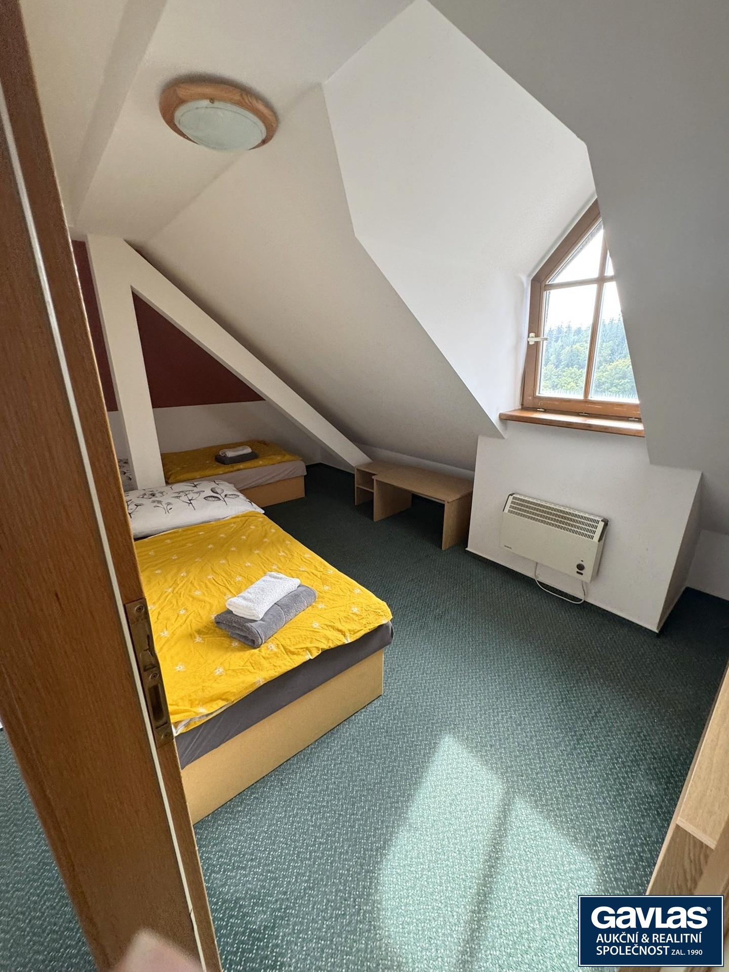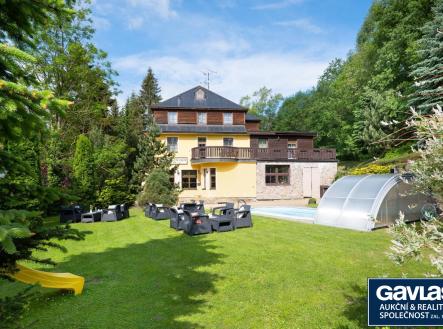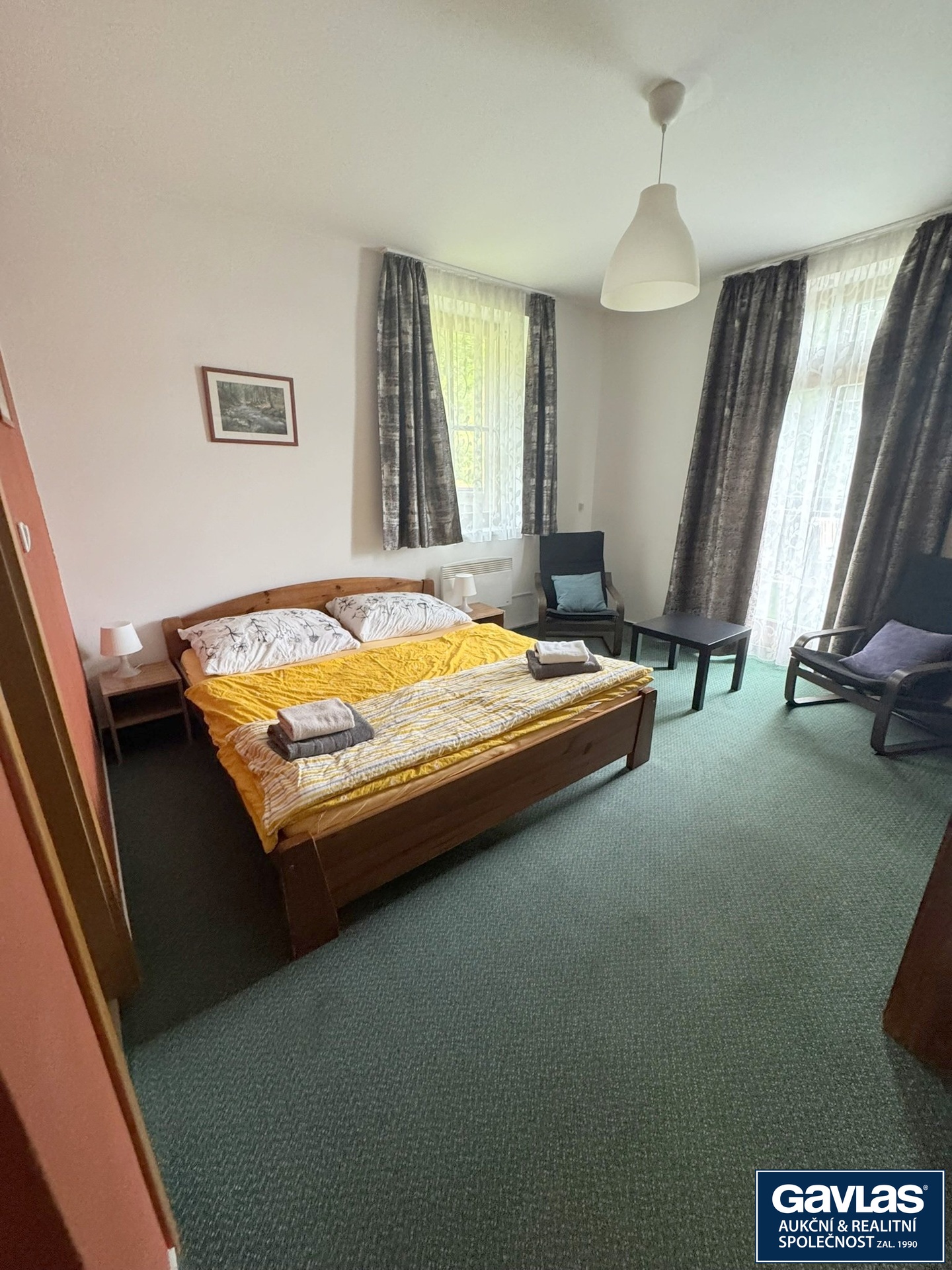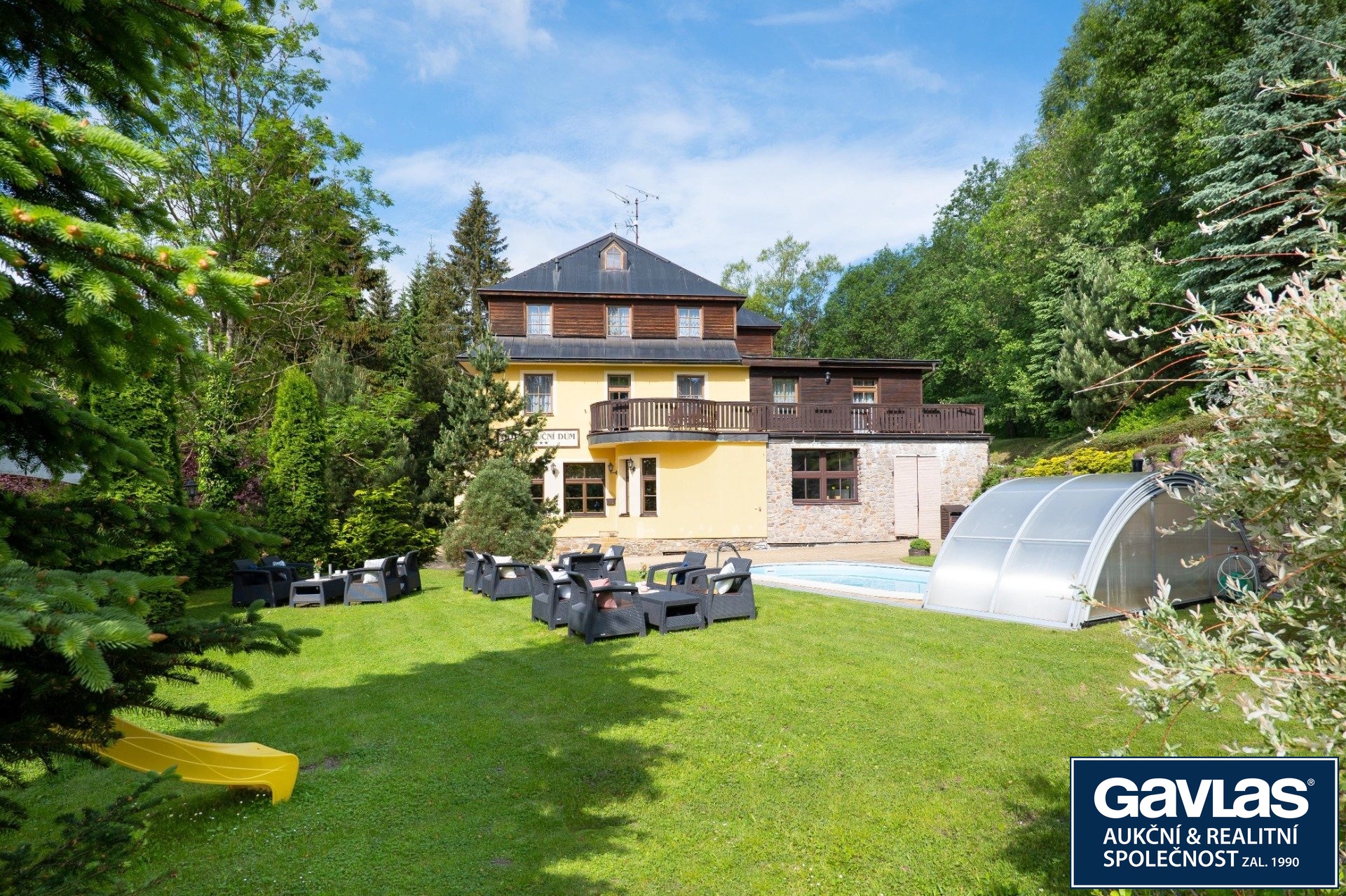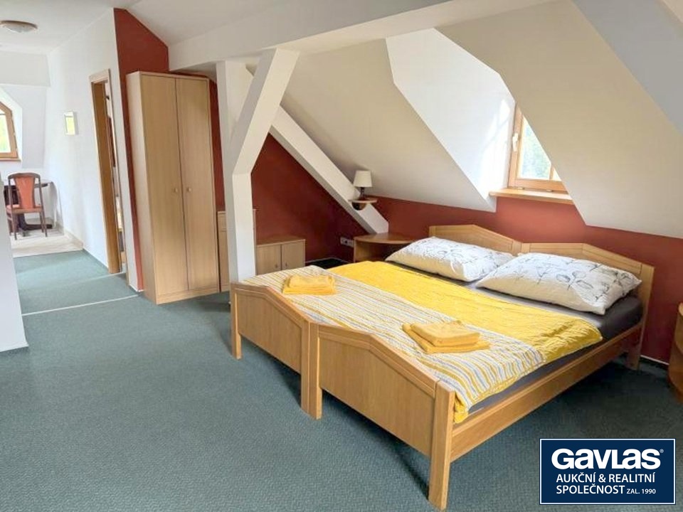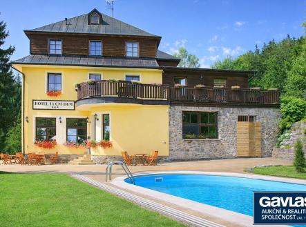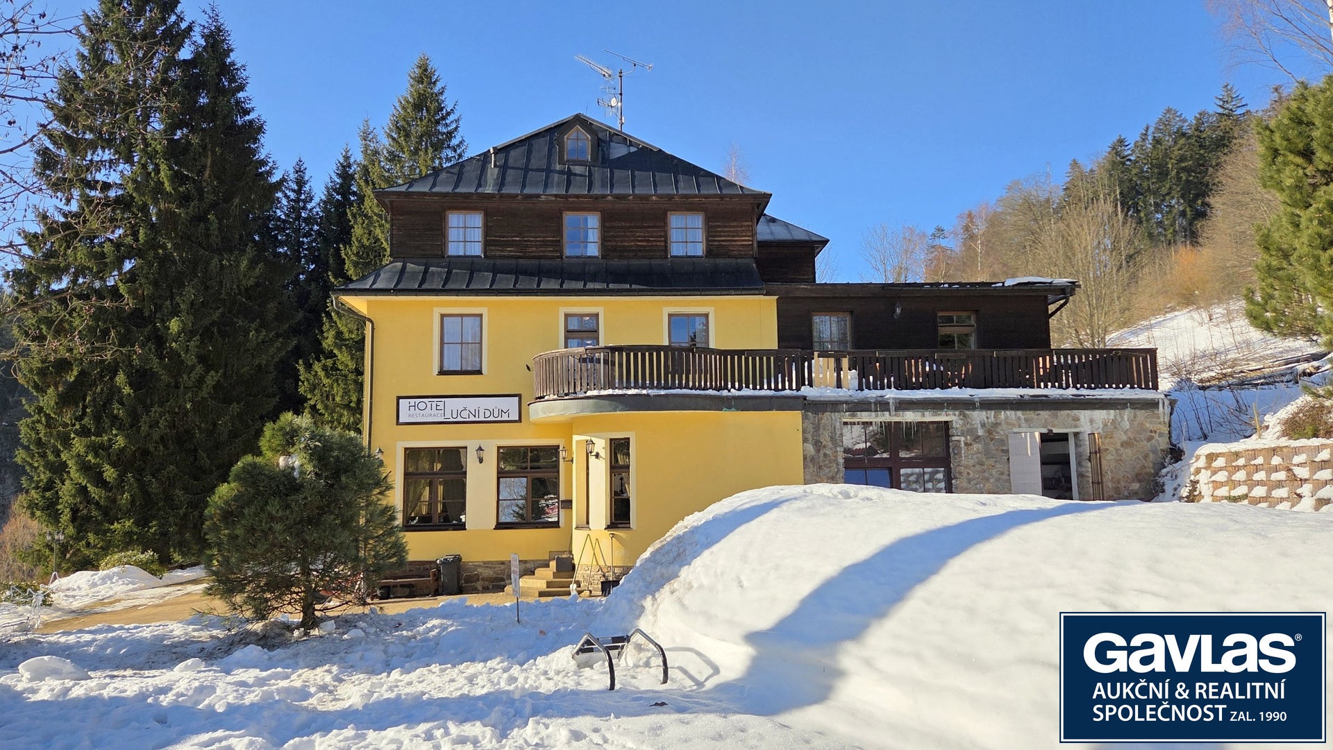 Hotel „ Luční dům“ v Krkonoších – Janské Lázně Hotel s plným provozem se nachází v západní části města Janské lázně v ulici Luční, v blízkosti od nástupní stanice lanové kabinové dráhy na Černou horu, ve snadné docházkové vzdálenosti je lanová cesta korunami stromů, stezka korunami stromů (cca 800 m), kolonáda v Janských Lázních (cca 800 m), aqua centrum s bazénem cca 900 m. Janské Lázně jsou světoznámým lázeňským městem a současně druhým nejlépe hodnoceným lyžařským střediskem v České republice. Město se rozkládá na úpatí Černé hory (1 299 m n. m.). Z občanské vybavenosti se ve městě Janské Lázně nachází knihovna, kino, kulturní zařízení, mateřská a základní škola, 2 speciální školy, ordinace lékařů, řada rekreačních zařízení, obchody a služby. Pro sport a volný čas město nabízí tělocvičny, sportoviště, bazény, přírodní koupaliště, outdoorové aktivity jako lyžování, sáňkování či lanové atrakce. Janské Lázně mají dobrou dopravní obslužnost díky autobusovým linkám systému IREDO, které město spojují s Trutnovem, Hradcem Králové, Pardubicemi i Prahou. Vlakové spojení vede do nedaleké Svobody nad Úpou, odkud je to přibližně 3 km do centra města. V místě funguje kabinková lanová dráha na Černou horu, v zimě skibus pro ubytované hosty a v letní sezóně cyklobusy do okolních turistických oblastí. Přístup a příjezd je přímo z veřejné komunikace na ulici Luční. Komunikace je zpevněná s asfaltovým povrchem. 20 pokojů pro hosty včetně podkrovního apartmánu 2kk s výměrou 66 m2. Každý pokoj je vybaven vlastní koupelnou a WC, lednicí, LCD televizí se satelitním příjmem a bezplatným připojením k internetu. Rodinné pokoje a několik dalších pokojů mají k dispozici balkón. Ostatní pokoje mají možnost využití společné terasy v prvním patře. Ubytovací kapacita 45-50 hostů. Restaurace 45 míst. Společenská místnost. Sauna. Zatravněná venkovní terasa s vyhřívaným bazénem. Technické zázemí hotelu (vybavená kuchyně, sklady, prádelna, úklidové místnosti, kancelář, šatna pro personál). Vytápění centrální elektrické a přímotopy. Napojení na veř. vodovod a kanalizaci. Celková výměra pozemků je 4.314 m2. Pozemky spolu se stavbami tvoří jednotný funkční celek
