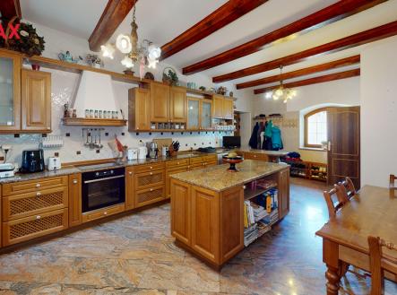 Představuji Vám k prodeji usedlost v italském stylu, která může nabízet více využití v obci Janůvky, okr. Svitavy. Video Vás provede částí domu, která je využita k bydlení. Usedlost byla před 25 lety kompletně zrekonstruována, části byly zcela přestavěny nebo dostavěny. Dům je stále využíván k trval. bydlení, tedy je pravidelně udržovaný, rozčleněný na obytnou část, nebyt. část a relaxační část. Přízemní část domu se sestává z obytné haly (obývac. pokoje) s proskleným výhledem do dvora, pracovny, 2 dětských pokojů, ložnice, koupelny s WC, kuchyně a spíže. V domě jsou v suterénu 2 krásné klenuté sklípky. V celém přízemí je podlahové vytápění, ve velké hale a v pracovně je krb. V celém domě je položena kvalitní dlažba z dovozu. Z obytné části se dá vejít do dvora, kde se nachází nebyt. část s kotelnou, WC a umyvadlem. Dvůr je uzavřený, nachází se zde zastřešené podloubí (42,70 m2) podél celé délky vnitřního bazénu, do kterého je vstup ze dvora prosklenými posuvnými dveřmi. Bazén je plně funkční. Na stavbu bazénu navazují další nebyt. prostory, a to: černá kuchyně, ve které se nachází kamna na TP, el. sporák a je zde zavedený přívod SV i TV, dále komora a dvě velké garáže. Na uzavřeném dvorku se dále nachází zastřešený přístřešek 8,30 m2 s posezením u krbu, udírny a pecí na pizzu. Zahrada za domem je pravidelně a krásně udržovaná. Nad celou obytnou částí a bazénem je připravené podkroví na využití dalších obyt. místností. Místnosti jsou již zateplené, s rozvody elektřiny, se stěnami, v některých je již hotová podlaha. Dokončená je část se soc. zař.: masážní vana, WC a dvě umyvadla a plně funkční krb. Celý pozemek je oplocený a nabízí naprosté soukromí. Výtápění domu je ústřední, kotlem na TP, dříve se topilo plynovým vytápěním, které je stále k dispozici. V obci není plynofikace, takže zde byla umístěna nádrž - zásobník. Teplá voda se ohřívá při topení v zásobníku kotlem, když se netopí tak elektřinou. Do domu je zavedena vodovod. přípojka a elektřina vč. motor. proudu. V obci není kanalizace, odpad je svedený do septiku. Výměry: obytná část RD: 185,70 m2, sklepy: 32,47 m2 (jeden 13,77 m2, druhý 18,70 m2), podkroví: 277 m2, nebytové prostory s kotelnou:14,70 m2, bazén: 63 m2, nebytové prostory (černá kuchyně a komora):33,50 m2, dvou garáže: 127,50 m2 (jedna 52,95 m2, druhá 74,55 m2), zastavěná plocha: 1047 m2, plocha zahrad a ostatní plochy: 1769 m2, celková plocha všech pozemků: 2816 m2. PENB se bude zpracovávat, prozatím uvádím třídu „G“. Tato krásná a netradiční nemovitost má své osobité kouzlo a nabízí naprosté soukromí. Momentálně nevyužité podkroví si může každý dotvořit podle svých potřeb a představ. Janůvky jsou malebná malá obec bez občanské vybavenosti, obklopena kopci a lesy (s houbařským a borůvkovým rájem), v Pardubickém kraji, okr. Svitavy. Nejbližší městečko je Březová nad Svitavou (11 km) a města s veškerou občanskou vybaveností jsou Moravská Třebová (13 km) a Svitavy (22 km). V případě vážného zájmu poskytnu další informace.