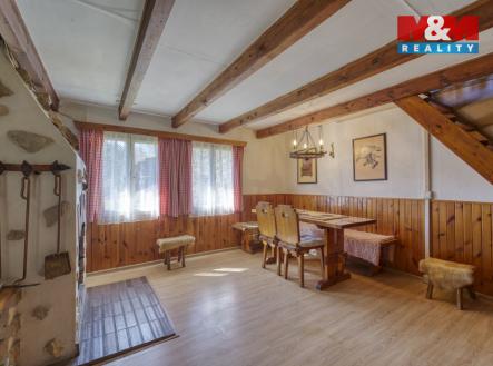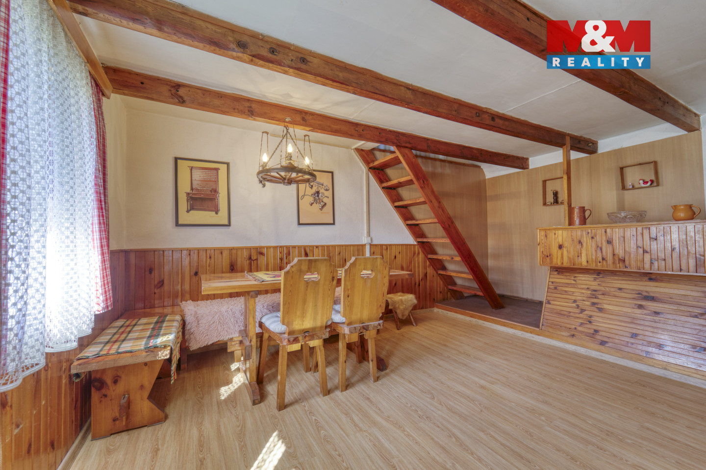 Nabízíme k prodeji útulnou chatu v klidné lokalitě Jarov, která je ideální pro všechny, kdo hledají únik do přírody a naprosté soukromí, bez přímých sousedů. Chata má dvě nadzemní podlaží a jedno podzemní, přičemž její užitná plocha činí 43 m². Konstrukce je kombinací cihly a dřeva. Dispozice chaty nabízí obytnou místnost, spací místnost, kuchyň, dále garáž a také saunu, která poskytuje ideální prostor pro relaxaci. Do chaty je zavedena elektřina, voda však není přivedena. Před chatou teče potůček. Na pozemku se nachází bazén, který oceníte především v letních měsících. Celé místo působí velmi příjemně a nabízí ideální zázemí pro víkendový odpočinek, rekreaci nebo trávení času v přírodě. Tato nemovitost je skvělou volbou pro ty, kteří hledají klidné místo daleko od ruchu města, s možností relaxace a soukromí.