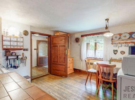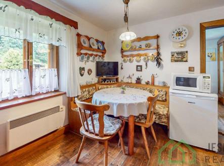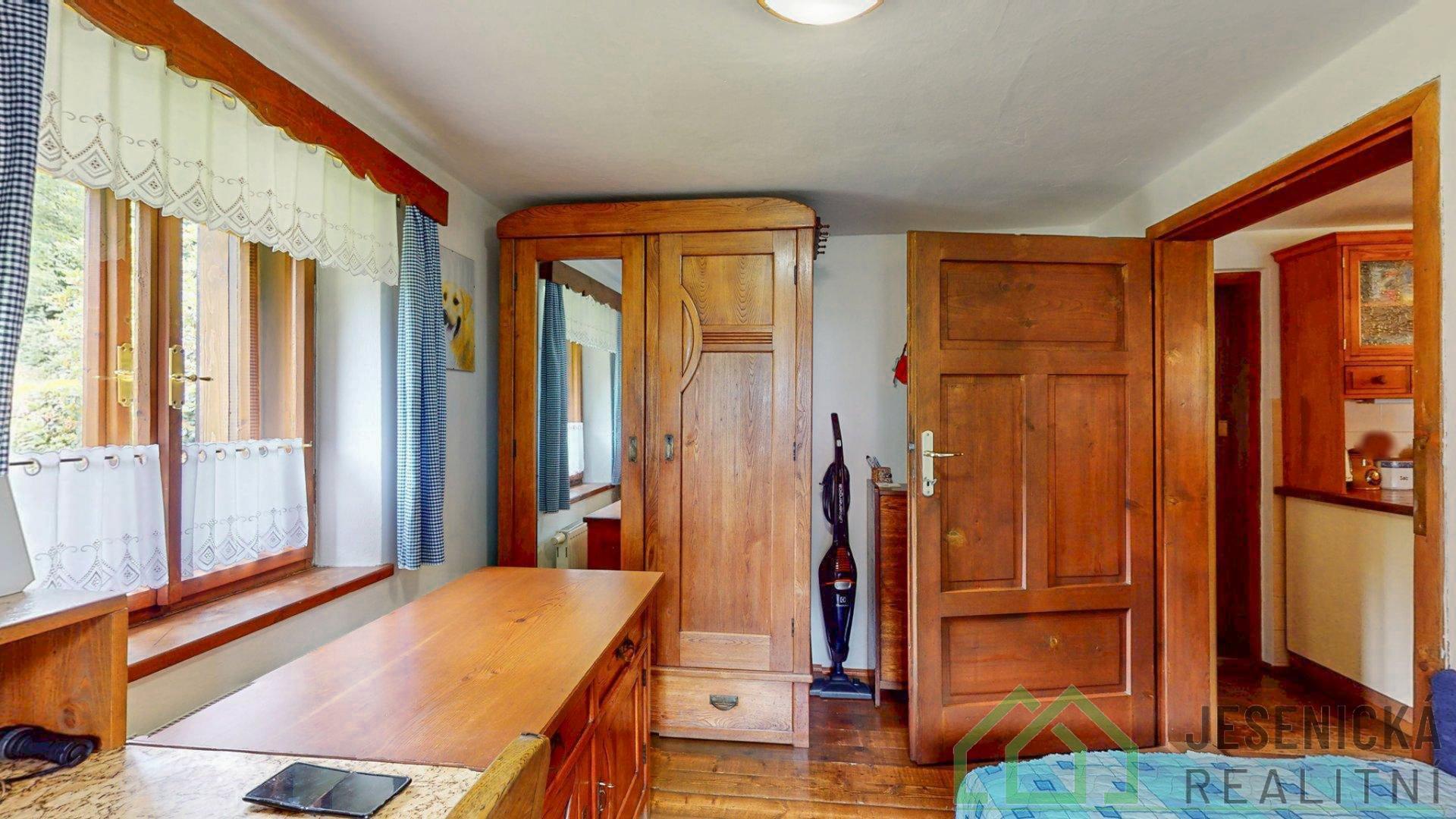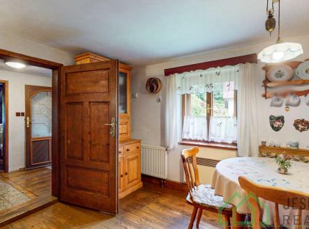 Prodej rekreačního domu v obci Travná u Javorníka klid, příroda, soukromí Nabízíme k prodeji kouzelný rekreační dům v malebné obci Travná (Javorník), ležící na samotě přímo pod lesem na konci zástavby, kde Vás obklopí jen příroda, lesy, louky a naprostý klid. Pozemek Celková výměra pozemků činí 5 017 m pečlivě udržovaná zahrada s upraveným trávníkem, okrasnými skalkami a vzrostlými stromy (např. ořech, bříza, túje). Zadní část pozemku tvoří parkově upravená plocha s možností zahradničení. Na pozemku se nachází také tři dřevěné sruby sloužící jako sklady nářadí a zahradního vybavení. Dům Celková obytná plocha domu je cca 85 m, dům má dvě podlaží: Přízemí: Zimní zahrada s krásným výhledem do okolí ideální pro posezení Obývací pokoj s krbem Kuchyně Ložnice Koupelna, WC Kotelna a sklad paliva Podkroví: Prostor pro spaní až pro 8 osob Dům je celý zařízený v okouzlujícím chalupářském stylu, interiér je útulný a působí velmi příjemně. Technické informace Vytápění: kotel na tuhá paliva Thermika (instalace 2021), elektrické přímotopy Ekoflex, krb, lázeňská kamna (ohřev vody) Voda: z kopané studny umístěné na kopci za domem (sdílená, rozdělená na podíly) Odpad: sveden do septiku Rozvody vody a odpady: vedeny v plastu Okna: kastlová Komíny: 3 komíny, všechny s vložkami a platnou revizí Další informace Dům je volný k nastěhování od ledna 2026 Cena k jednání Tato nemovitost je ideální pro milovníky klidu, přírody a soukromí. Výborné místo pro rekreaci, trvalé bydlení nebo investici. Neváhejte a požádejte o osobní prohlídku, těšíme se na vaši návštěvu. Jesenická realitní, partner na trhu s nemovitostmi.