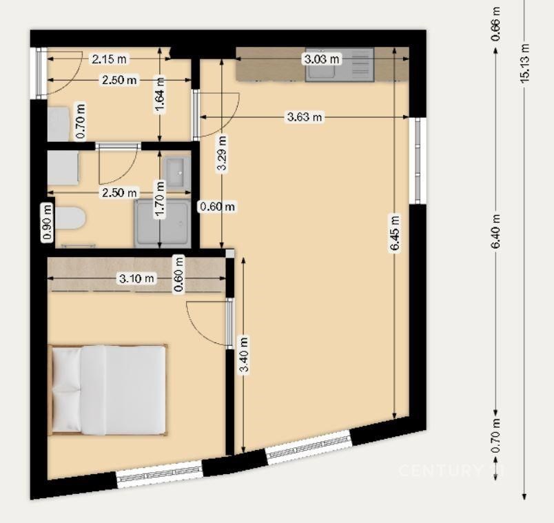 Jednotka v osobním vlastnictví 2+kk, cca 45 m2, 2. NP, cihla, Jenišovice cca 4km od Turnova. Všechny jednotky v domě, který je z roku 1935, prošly kompletní rekonstrukcí (v podstatě na úroveň novostavby, kolaudace proběhla v listopadu 2025). Jsou kompletně instalovány nové rozvody odpadů a vody, nové rozvody elektro, nové koupelny (kvalitní Italský obklad Sybil Beige věrně imitující přírodní kámen), na podlaze vinyl s dekorem dubu (nová je i celková skladba podlah), nové vnitřní dveře včetně obložek, nové omítky, vlastní elektrokotel, na ohřev vody vlastní bojler, nové vchodové bezpečnostní a protihlukové dveře do jednotky Magnum. Momentálně se také provádí kompletní rekonstrukce vnitřních společných prostor. Nové společné rozvody odpadů a vody, nové rozvody elektro, světla na fotobuňku, nové vchodové dveře, nová dlažba na chodbách, oprava omítek ve společných prostorách. Dům nemá žádný úvěr. Platba do fondu oprav je 20, Kč/ m2. Během příštího roku má SVJ v plánu vyřídit úvěr a realizovat novou fasádu na domě. Jednotka je již zapsaná v katastru nemovitostí a je vedena jako atelier. Polyfunkční dům se nachází v samém středu obce Jenišovice hned u autobusových zastávek. V přízemí objektu vznikne během roku 2026 prodejna se smíšeným zbožím. Obec Jenišovice má cca 1300 obyvatel. Nachází se zhruba 4,5 km severně od města Turnova, který je pro ně obcí s rozšířenou působností. Je zde veškerá občanská vybavenost. Obec se nachází v krásném přírodním prostředí na okraji území Českého ráje. Jsou zde zajímavá skalní města, romantická údolí, vyhlídky, hrady a zámky, naleziště drahých kamenů a malebná lidová architektura. Právě kvůli spoustě zajímavých míst pro zábavu, turistiku i odpočinek se jednotka hodí jak k trvalému bydlení, tak ke komerčnímu pronájmu.