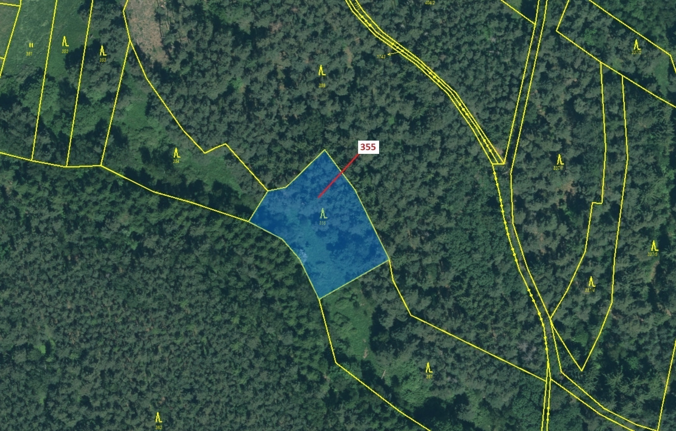 Lesní pozemek o výměře 1 924 m2, parcelní číslo 355, podíl 1/1, katastrální území Podbořánky, obec Jesenice, obec s rozšířenou působností Rakovník, okres Rakovník, Středočeský kraj.