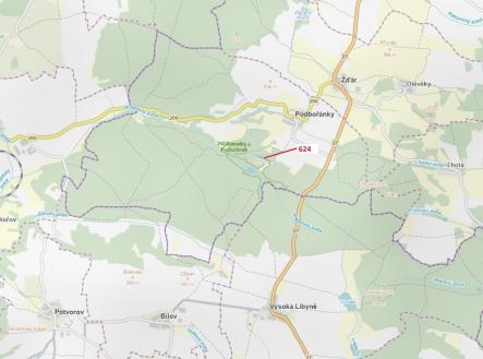 Lesní pozemek o výměře 2 895 m2, parcelní číslo 624, podíl 1/1, katastrální území Podbořánky, obec Jesenice, obec s rozšířenou působností Rakovník, okres Rakovník, Středočeský kraj.