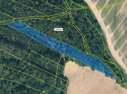 Lesní pozemek o výměře 4 694 m2, parcelní číslo 1193/10, podíl 1/1, katastrální území Podbořánky, obec Jesenice, obec s rozšířenou působností Rakovník, okres Rakovník, Středočeský kraj.
