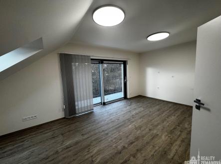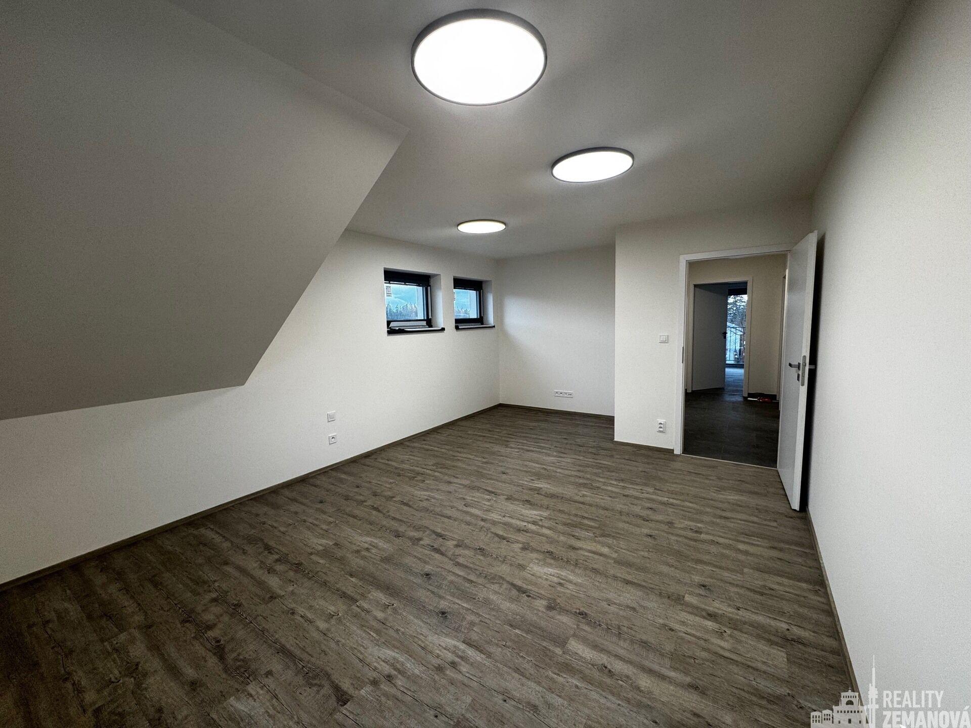 Nabízíme k dlouhodobému pronájmu zcela nový, dosud neužívaný byt 2+kk s terasou, v novostavbě na rozhraní ulic Houbová a Hlavní. MHD 5 minut chůze. Volný od 1. 2. 2026. Fotografie aktuální k 7. 12. 2025. Dispozice a vybavení: byt č. 3, 1 patro/podkrovní, výměra 56,06 m2 + 6,6 m2 terasa. předsíň 5,38 m2, obývací pokoj s kuchyňským koutem 22,38 m2 (zelená linka bude osazena, černé spotřebiče: myčka, lednice s mrazákem, trouba, mikrovlnka, digestoř) a vstupem na terasu 6,6 m2, ložnice 21,14 m2, koupelna se sprchovým koutem a přípojkou na pračku 5,13 m2, samostatné WC 2,03 m2 podlahové vytápění na oknech žaluzie Parkování a zázemí: možnost 1–2 parkovacích stání na vlastním pozemku – 1.500 Kč/měs./místo prostor pro uložení kol atp. v "domku" na zahradě pro nájemníky Lokalita: Klidná část města s výbornou dostupností služeb. V docházkové vzdálenosti MHD, obchod, školka, škola, restaurace a další občanská vybavenost. Okolí je vhodné pro procházky i cyklistiku. Provize RK: 1 měsíční nájem. Nájemné: 24.000,- Kč/měs. Služby: 500,- Kč/měs./os. Elektřina převodem na nájemníka, vytápění a voda teplá a studená jsou měřené spotřeby. Kauce: 30.000,- Kč