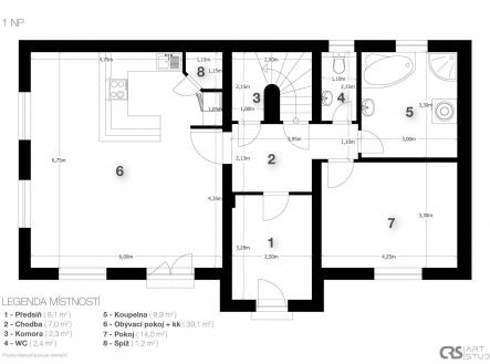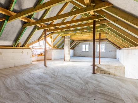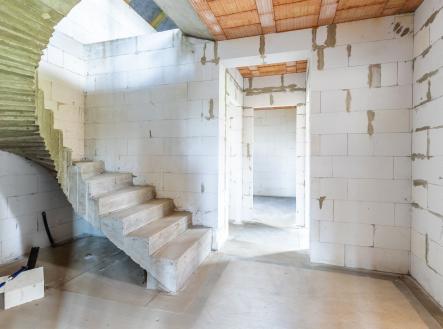 Nabízíme vám ke koupi rozestavěný rodinný dům v Horních Jirčanech u Jesenice. Stavba se nachází na souboru pozemků, které mají celkovou výměru 1246 m2. Původní stavba domu byla odstraněna a na místě vystavěna hrubá stavba domu o dvou obytných patrech. Dispozice stavby je 5 + KK s obytnou plochou 168 m2. Objekt je postaven z obvodového zdiva Ytong Lambda, stropy jsou z keramického systému Miako, schodiště do patra je železobetonové. Stavební povolení je platné do roku 2027. Podle projektu je navržen jako hlavní zdroj vytápění kotel na biomasu, umístění technologie je plánováno ve vedlejší hospodářské budově, která sousedí s hlavní stavbou. Vedlejším zdrojem vytápění bude krbová vložka umístěná v obývacím pokoji. Pitná voda bude čerpána z vrtané studny, v současnou chvíli je realizován průzkumný vrt. Dalším zdrojem vody je původní kopaná studna. Splašková voda bude napojena na kanalizaci. Na dům navazuje původní hospodářská část, která je určena k rekonstrukci a může mít více možností k využití. Další stavbou je objekt bez čp/če v přední části pozemku. V Horních Jirčanech je základní občanská vybavenost, kompletní se nachází v blízké Jesenici. Je zde velmi dobrá dopravní dostupnost do Prahy a napojení na Pražský okruh (D0) a dálnici D1. pro více informací kontaktujte makléře.