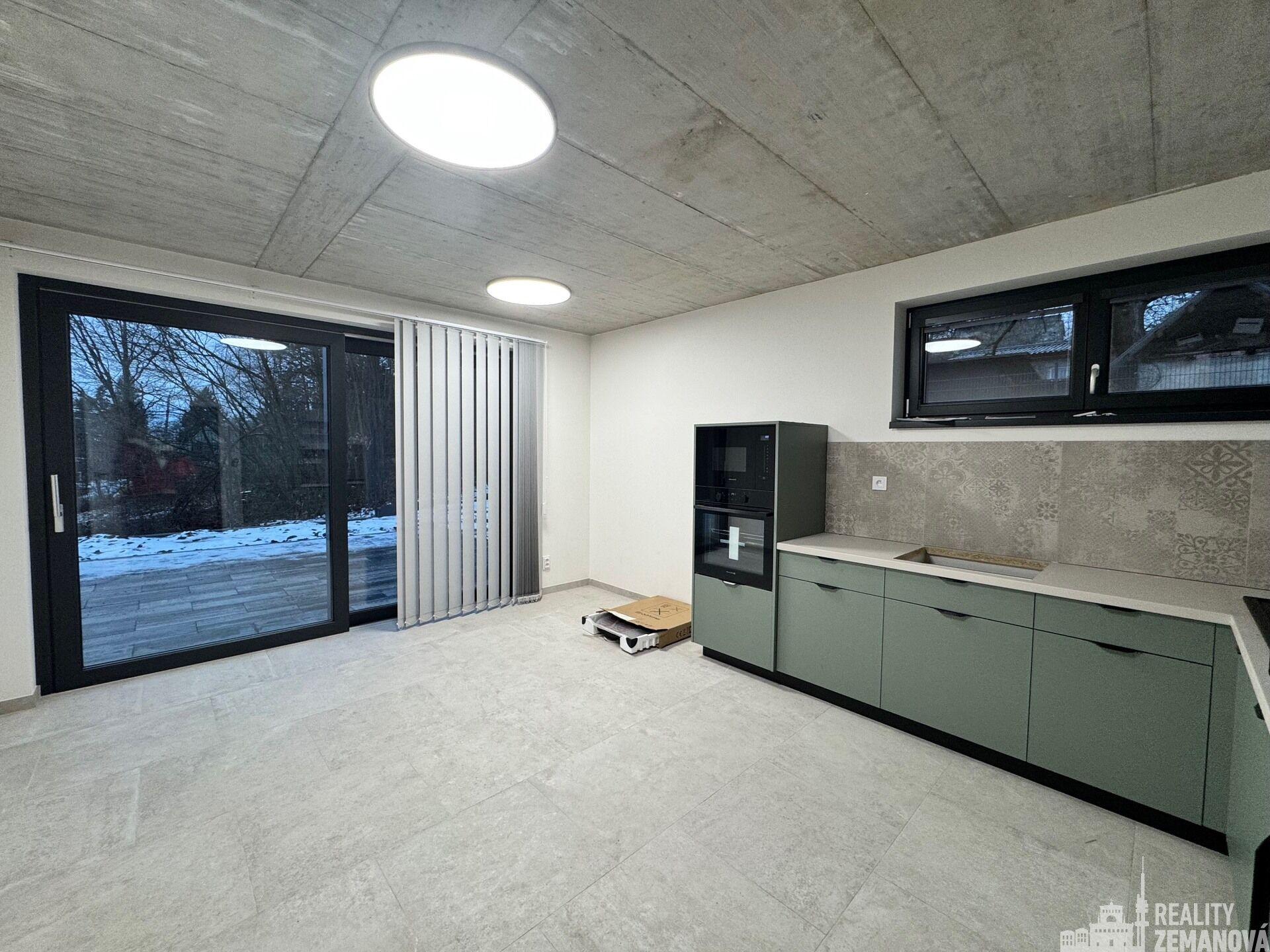 Pronájem nového bytu 2+kk s terasou a zahrádkou v novostavbě, rozhraní ulice Houbové a Hlavní. Adresa Hlavní 1582. Nabízíme k dlouhodobému pronájmu zcela nový, dosud neužívaný byt. MHD 5 minut chůze. Volný od 10. 2. 2026. Fotografie aktuální k 25. 1. 2026. Dispozice a vybavení: byt č. 2, přízemí , výměra 41,7 m2. Z toho: obývací pokoj s kuchyňským koutem 19,3 m2 (bude dodána zelená linka, černé spotřebiče: myčka, lednice s mrazákem, trouba, mikrovlnka, digestoř) ložnice 15,00 m2, koupelna se sprchovým koutem a WC, přípojka na pračku 4,60 m2, předsíň 2,8 m2, vstup na terasu cca 28 m2+ zelená plocha kolem domu náležící k bytu cca 80 m2 podlahové vytápění - tepelné čerpadlo pro dům na oknech žaluzie Parkování a zázemí: možnost 1–2 parkovacích stání na pozemku – 1.500 Kč/měs./místo prostor pro uložení kol, sekačky a dalšího vybavení na pozemku u domu pro nájemníky Lokalita: Klidná část města s výbornou dostupností služeb. V docházkové vzdálenosti MHD, obchod, školka, škola, restaurace a další občanská vybavenost. Okolí je vhodné pro procházky i cyklistiku. Provize RK: 1 měsíční nájem + DPH. Nájemné: 24.000,- Kč/měs. Služby 3.500,- Kč/měs. při dvou osobách Kauce 30.000,- Kč Elektřina převodem na nájemníka, topení a spotřeby teplé a studené vody jsou měřené.