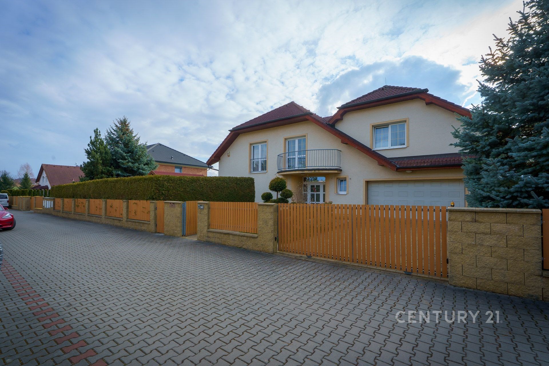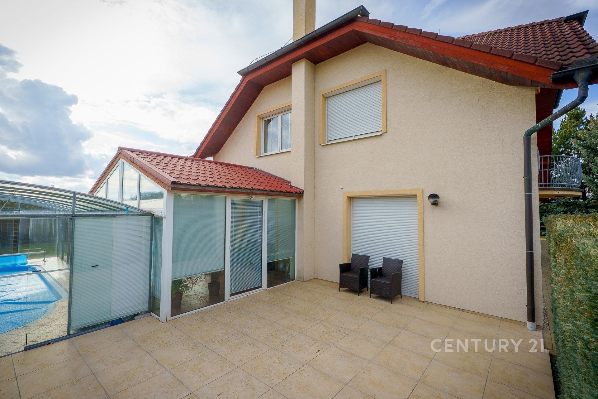 Nabízíme k pronájmu prostorný rodinný dům s krytým bazénem, zimní zahradou, 5 ložnicemi u 4 ložnic je šatna, 3 koupelnami, 3 terasami a upravenou zahradou. V přízemí se nachází vstupní chodba se samostatným WC, hala se schodištěm do patra, samostatnou plně vybavenou kuchyní se spíží, koupelna se sprchovým koutem, technická místnost s prádelnou a vstupem do dvougaráže. Dále obývací pokoj s jídelnou se vstupem na zimní zahradu a krytý bazén s protiproudem. V patře se nachází 5 ložnic se šatnami, 2 koupelny, 1 samostatné WC s bidetem. Dům je napojen na bezpečnostní systém, na oknech jsou elektrické rolety. Voda je z veřejného vodovodu, na zalévání zahrady je vybudována vlastní studna se zavlažováním. Na zahradě se nachází zahradní domek. Na domě je tepelné čerpadlo. Parkování je možné v garáži pro 2 auta a před garáží na pozemku. Dům se nachází v klidné rezidenční lokalitě, cca 15 km od centra Prahy. Výhodná poloha nedaleko Průhonického zámku a parku, Dendrologické zahrady a dětského hřiště, v dobré dostupnosti do mezinárodní školy Prague British International School. Lokalita se vyznačuje kvalitní občanskou vybaveností a mnoha možnostmi sportovního vyžití vč. nedalekého Aquaparku, který je součástí nákupní a zábavní zóny Čestlice. Dům stojí v těsné blízkosti autobusové zastávky. Poplatky včetně elektřiny činí 14 000 Kč měsíčně. Poplatky za služby zahrnující údržbu a sekání zahrady a údržbu bazénu budou dohodnuté individuálně s nájemcem. Kauce dva nájmy bez poplatků. Odměna za služby RK činí jedno nájemné. Nábytek není součástí pronájmu, dům bude připraven ihned k nastěhování. Doporučuji prohlídku.