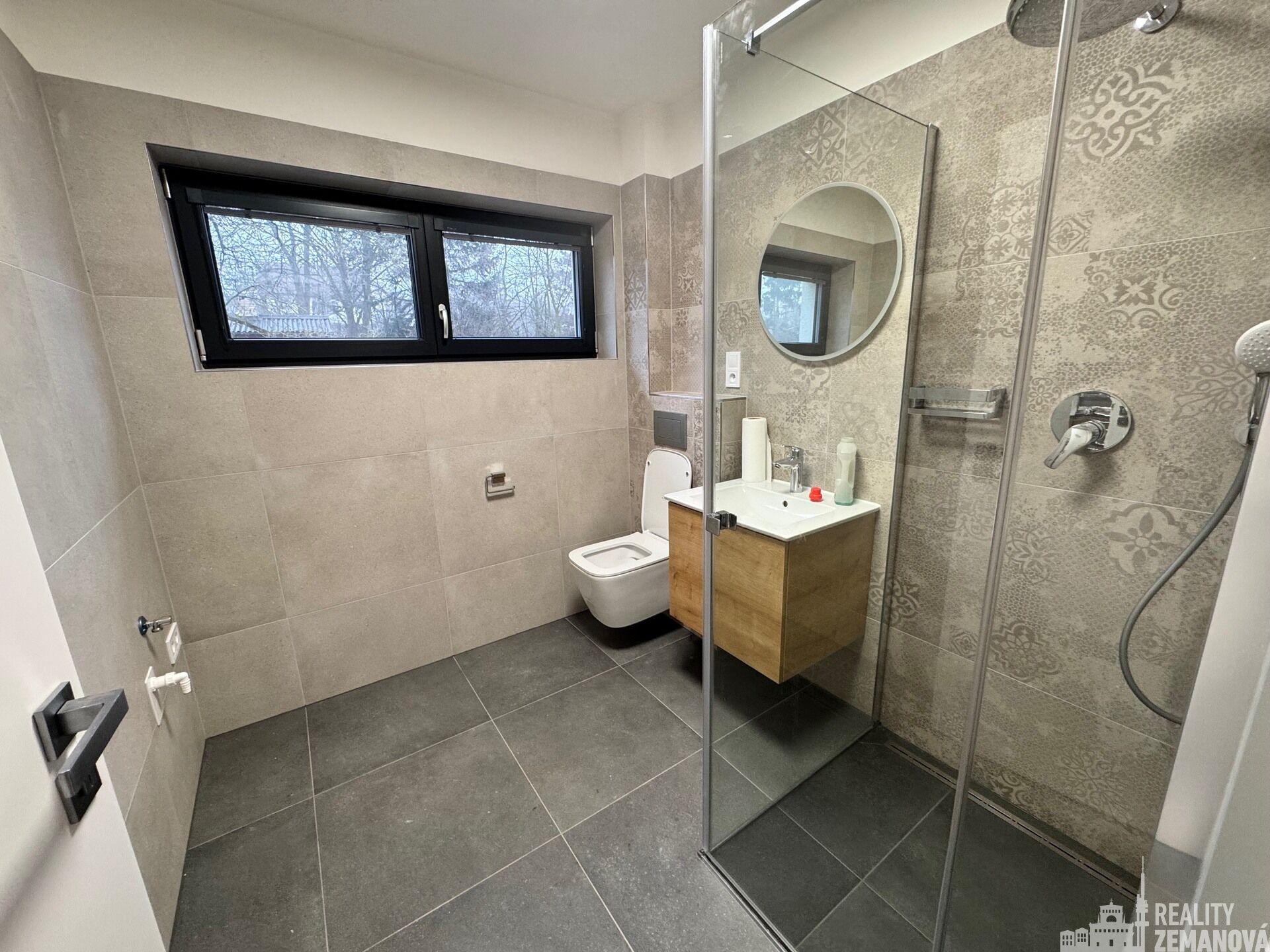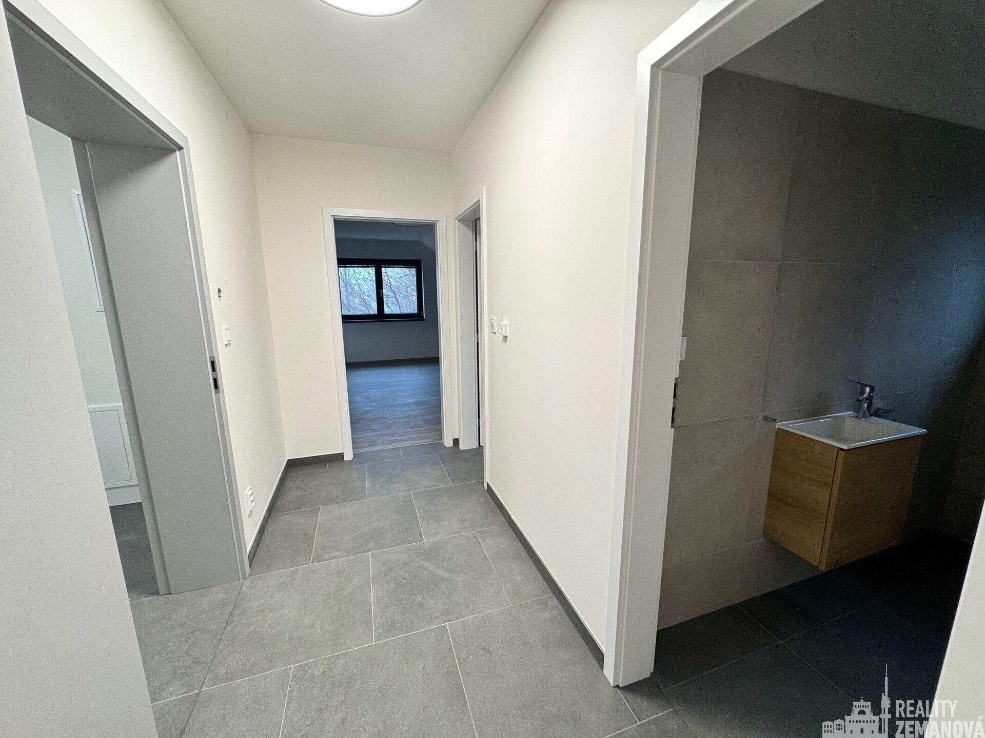 Nabízíme k dlouhodobému pronájmu zcela nový, dosud neužívaný byt 2+kk v novostavbě na rozhraní ulic Houbová a Hlavní. MHD 5 minut chůze. Volný od 15. 2. 2026. Fotografie aktuální k 25. 1. 2026. Adresa Hlavní 1582. Dispozice a vybavení: byt č. 4, 1 patro/podkrovní, cekem 46,84 m2, z toho: předsíň 4,48 m2, obývací pokoj s kuchyňským koutem 19,79m2 (bude dodána zelená linka, černé spotřebiče: myčka, lednice s mrazákem, trouba, mikrovlnka, digestoř) ložnice 15,48 m2, koupelna se sprchovým koutem a přípojkou na pračku 4,59 m2, samostatné WC 2,50 m2, podlahové vytápění - tepelné čerpadlo pro dům na oknech žaluzie Parkování a zázemí: možnost 1–2 parkovacích stání na pozemku – 1.500 Kč/měs./místo prostor pro uložení kol atp. v "domku" na pozemku Lokalita: Klidná část města s výbornou dostupností služeb. V docházkové vzdálenosti MHD, obchod, školka, škola, restaurace a další občanská vybavenost. Okolí je vhodné pro procházky i cyklistiku. Provize RK: 1 měsíční nájem. Nájemné 21.000,- Kč/měs. Služby 3.500,- Kč/měs. Kauce: 30.000,- Kč Elektřina na nájemníka. Voda teplá a studená + topení jsou měřené spotřeby.