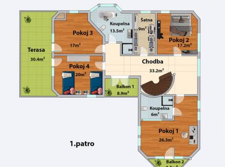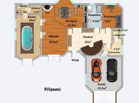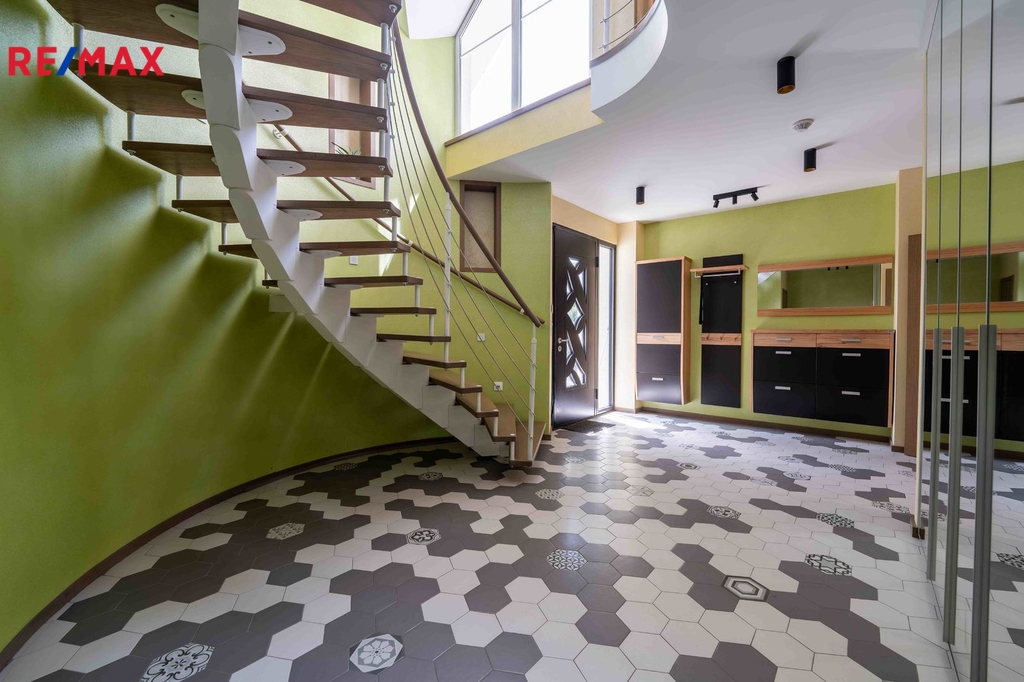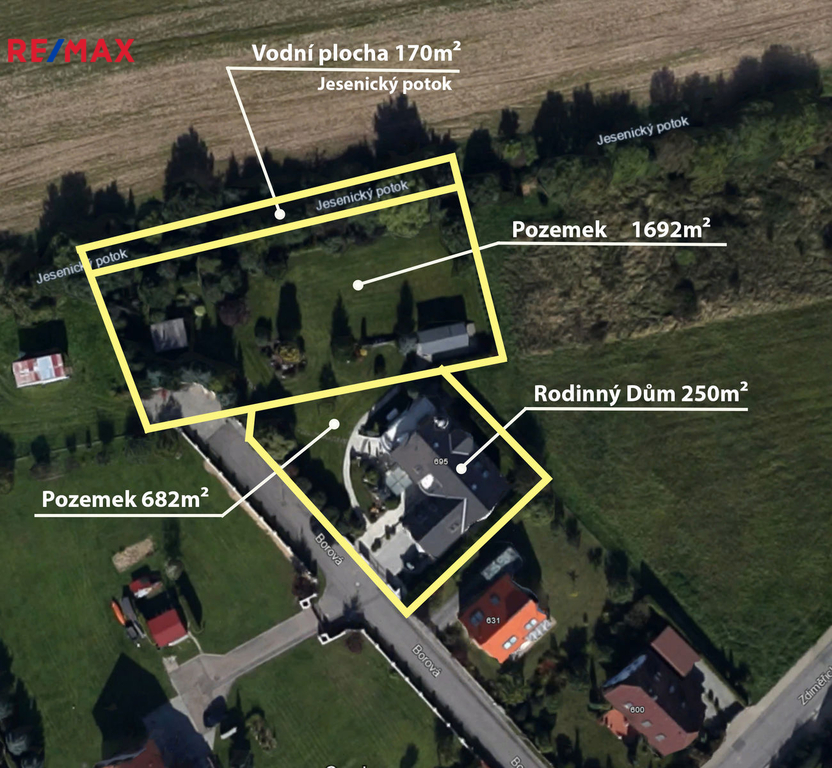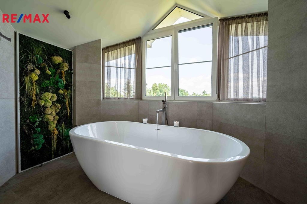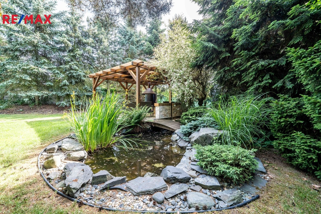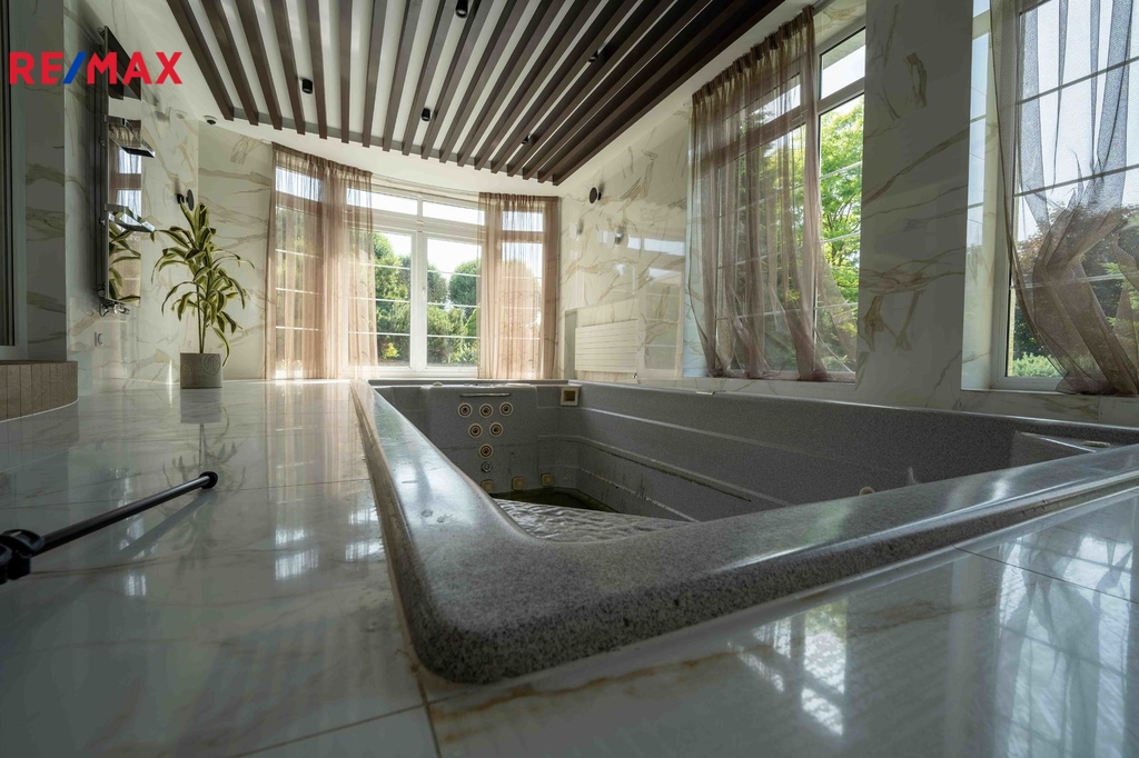 Exkluzívně nabízím k prodeji krásný rodinný dům s vlastním potokem a velkým pozemkem 2762 m2, Jesenice, Praha-západ. K domu náleží zahrada o celkové velikosti 2762 m2. Dolní část pozemku lemuje Jesenický potůček. Na pozemku pokrytém udržovanou trávou se nachází altán, veranda s grilem, jezírko s fontánou a zahradní domek 15 m2. Automatický centrální zavlažovací systém pozemku. Popis domu: Suterén: dům je podsklepeny, sklepní prostor s oknem a plochou 6 m2. Přízemí : vstupní hala 25 m2, obývací pokoj s krbem a kuchyňským koutem celkovou plochou 52 m2. Z obývacího prostoru jsou vstupy na terasu, a zimní zahradu s luxusním designovým bazénem s vířivkou, koupelnou se srpovým koutem a WC. Vedle koupelny je technická místnost s tepelným systémem Buderus. Dále se v přízemi nachází pracovna, koupelna s prádelnou zónou, WC a a sprchovým koutem. Vstup z technické místnosti do garáže pro 2 auta+ parkovaní pro 2 auta před garáže. Přízemí domu má podlahové topení a klimatizace v pokojích. Podkroví: chodba s balkonem, 2 dětských pokoje se společnou terasou, koupelna s vanou, sprchovým koutem a WC. Dále je šatna s oknem, 1 ložnice, a 1 manželský pokoj s balkonem a vlastní koupelnou (WC+ sprchový kout). Patro má lištové vytápění a klimatizace v pokojích. Měsíční náklady na energie - 13 000 kč. Dům má nainstalovaný smart-systém a signalizace. Dům prošel celkovou rekonstrukci interiéru v roce 2019. Je kompletně zařízený a připravený k nastěhování. Jesenice nabízí ideální životní prostředí pro rodiny s dětmi díky blízkosti škol, parků a dalších atrakcí. Dostupnost dopravy je zajištěna vlakem, dálnicí, silnicí, MHD a autobusem. Tento rodinný dům je skvělou volbou pro ty, kteří hledají bezpečné a příjemné bydlení pro svou rodinu.