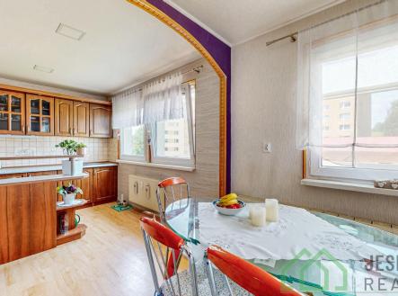 Jesenická realitní nabízí ,v zastoupení majitele, k prodeji krásný, prostorný , vzdušný byt 3 + 1 s podlahovou plochou 67 m2. Jde o okálový dům cca 10 minut chůze od centra města Jeseník. Jednotka nacházející se ve 3.podlaží je po rekonstrukci, jenž proběhla v roce 2018, má svůj samostatný balkón a sklepní kóje na uskladnění věcí. V roce 2018 proběhla instalace vodních a odpadní rozvodů, nové el. rozvody v mědi, plastová okna byla vyměněná v roce 2014. Od roku 2017 je dům kompletně zateplen.( polystyren 25 cm) Současně se zateplením se dělala i nová střecha. Půda je zaizolována 30 cm vatou. Jednotka je ve velmi dobrém stavu a dlouhodobě bez dalších investic, je tedy připravena k okamžitému bydlení. Vytápění jednotky a ohřev vody je centrální plynové. Díky zateplení zde nejsou velké náklady na vytápění. Při příchodu do bytu vstupujeme do chodby, po pravé straně se nachází pokoj , může sloužit jako dětský. Chodbou projdeme do slunné kuchyně. Na chodbě máme vchody do koupelny a samostatné WC. Vstup z kuchyně do obývacího pokoje je zajištěn velkým průchodem, který tyhle dvě místnosti spojuje. Celá jednotka je průchozí. Ložnice je vedená v chalupářském stylu, dominantu tvoří pěkné přiznané trámy. Bytový dům z roku 1980 je okál , dřevostavba ve velice dobrém a udržovaném stavu. Má svůj fond oprav a funkční společenství vlastníků. Bydlení je zde velice klidné s bezproblémovým osazenstvem. Ve městě Jeseník naleznete veškerou občanskou vybavenost, nemocnici, autobusové a vlakové spojení, úřady, školky, školy základní i střední. Pokud vás nabídka oslovila, neváhejte a přijeďte se na byt podívat osobně. Opravdu máme co nabídnout. Cena nemusí být konečná, lze prodiskutovat a dojít k částce, jenž bude vyhovovat oběma stranám. Těšíme se na osobní setkání.