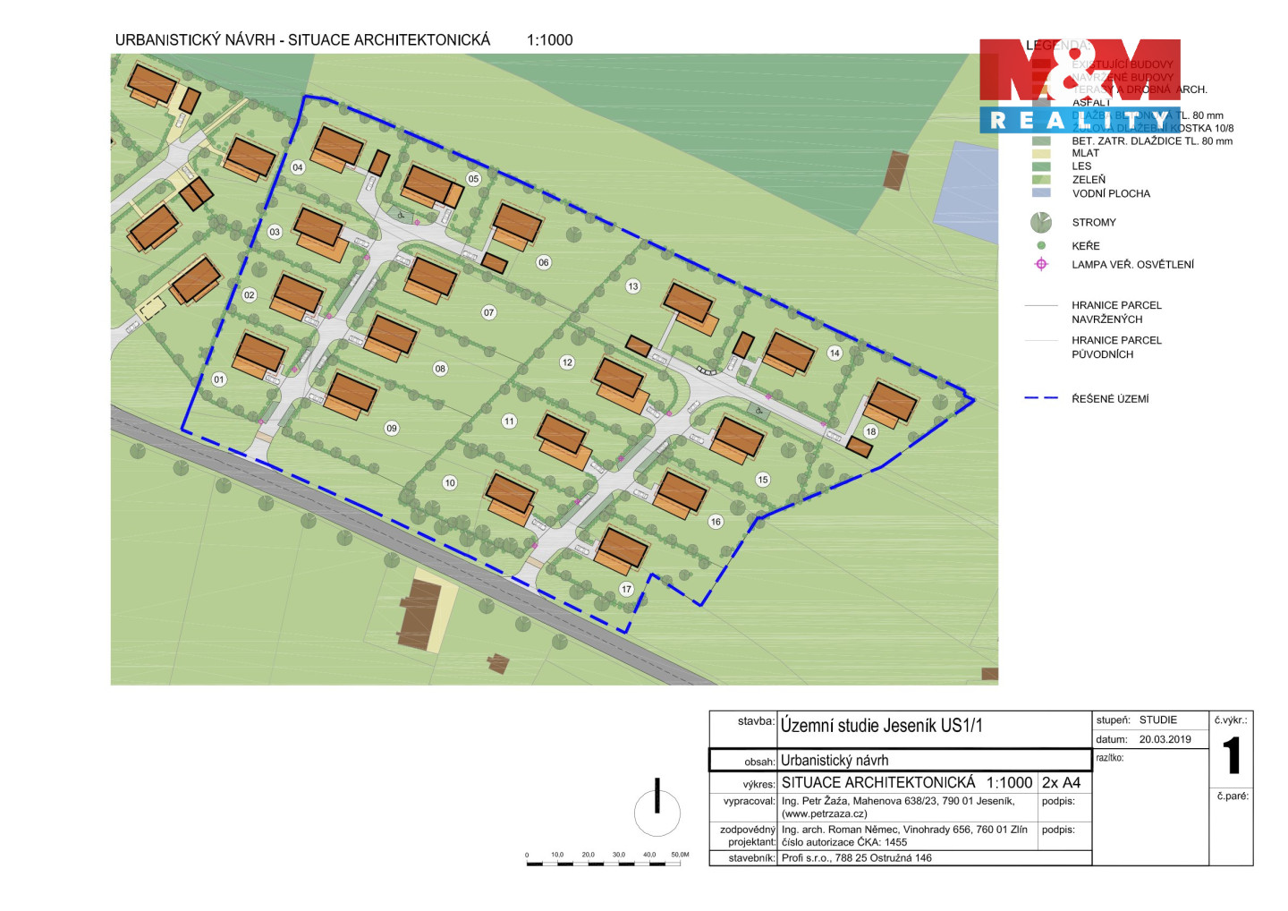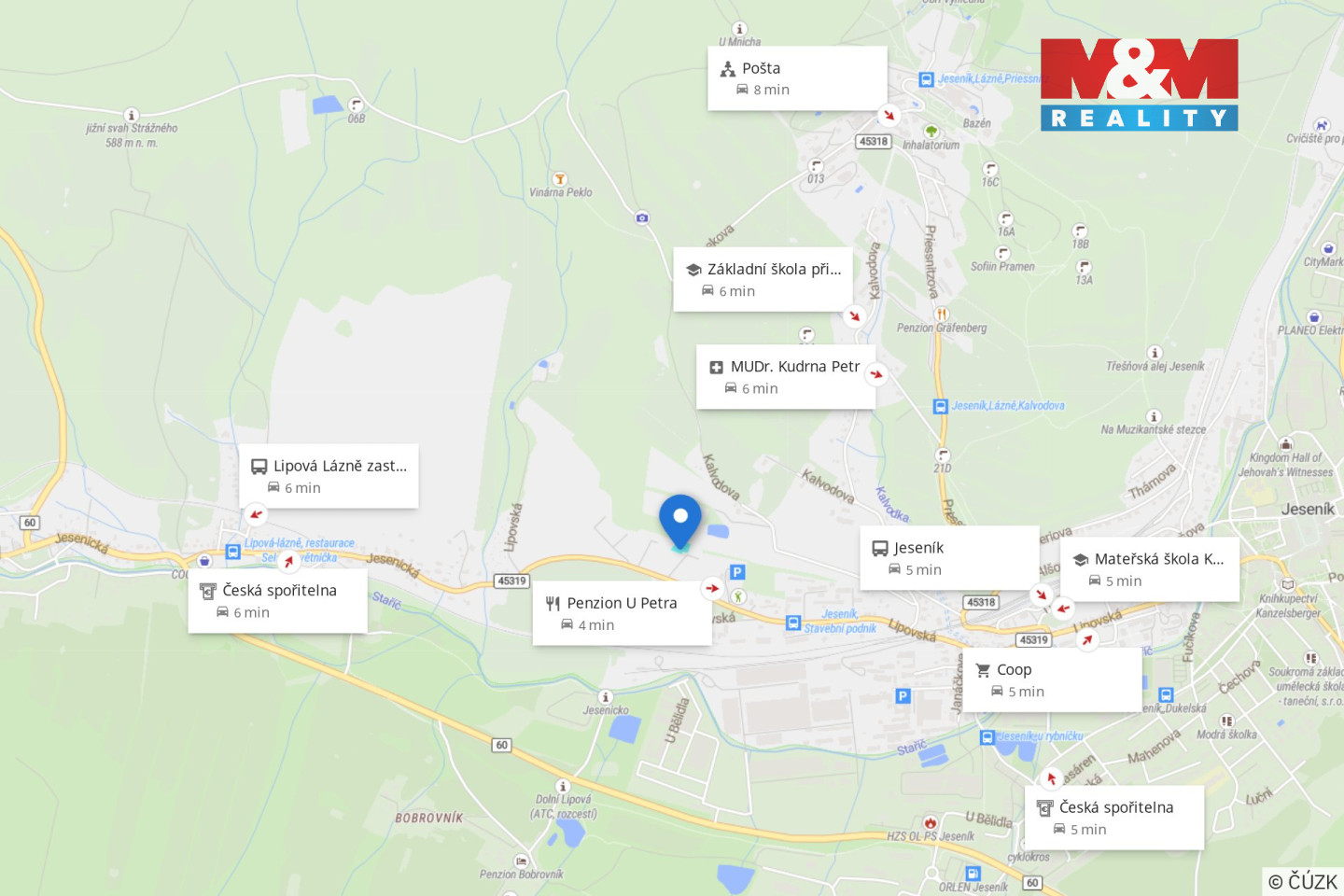 Nabízíme k prodeji pozemek o celkové výměře 1 497 m² v Jeseníku. Mírně svažitý pozemek s výhledem na okolní horskou krajinu má pravidelný tvar. Nachcází na na okraji zastavěné oblasti. Parcela je dle územního plánu určena k individuálnímu bydlení a představuje tak vhodné místo pro výstavbu rodinného domu nebo zajímavou investiční příležitost. Pozemek má obecní asfaltovou příjezdovou komunikaci. Inženýrské sítě – elektřina, vodovod a kanalizace – jsou přivedeny na jeho hranici, což výrazně usnadní budoucí výstavbu. Doporučujeme osobní prohlídku.