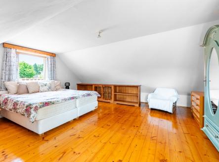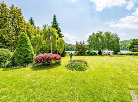 Prodej dvoupodlažního rodinného, zděného domu 5+1 se samostatnou garáží na unikátním prosluněném jihozápadně orientovaném pozemku s přímým vstupem k jezeru, s geniem loci místa, kde si na březích soustavy jevanských rybníků, v atraktivní lokalitě chráněné krajinné oblasti svá letní sídla v minulosti stavěly významné osobnosti podnikatelského, politického i uměleckého světa. Malebnost a romantický ráz okolní krajiny a především krásné lesy do Jevan lákají příznivce klidného, rezidenčního bydlení za městem. Jevany se rozkládají na okraji národní přírodní rezervace Voděradské bučiny asi 34 kilometrů jihovýchodně od centra Prahy a třináct kilometrů východně od města Říčany. Klidná a okouzlující rezidenční lokalita s veškerou občanskou vybaveností, s dobrou dostupností do centra Prahy. (prodejna potravin, pošta, restaurace, kino, mateřská škola, základní škola v sousední Vyžlovce). Dispozice domu zahrnuje dvě podlaží (195m2). Přízemí zahrnuje vstupní halu, velkou kuchyň s jídelnou, dva pokoje, koupelna s toaletou, vstup do sklepa. V patře se nacházejí 3 ložnice a koupelna se šatnou. Dům je částečně podsklepen, suterén je využit pro technické zázemí. Na pozemku se dále nachází samostatná budova určená k parkování a skladu. Sklad je vhodný k uskladnění zahradního nábytku, jako dílna nebo pro jiné využití. Dům je celoročně vytápěn topným olejem s kapacitou zásobníků 3 750 litrů. Vila je ve velmi dobrém stavu. Podlahy jsou dřevěné, stejně jako okna. Dům se prodává kompletně vybavený, a to v rozsahu uvedeném ve fotodokumentaci. Mimořádně prostorná a okouzlující zahrada se vzrostlými stromy poskytuje soukromí a navazuje mimořádný pocit nerušeného prostředí a intimity. Pozemek bezprostředně sousedí s rybníkem a má k němu soukromý vstup. Národní přírodní rezervace Voděradské Bučiny s bukovým porostem, který se každý podzim vybarví do neuvěřitelných barev, nabízejí možnost dlouhých procházek a výletů do přírody. Územím s typickou flórou a faunou prochází osm kilometrů dlouhá naučná stezka Voděradské bučiny, projet se dá i na kole. Místo je v dobré dojezdové vzdálenosti od Prahy, cesta autem na okraj metropole trvá necelých 30 minut. Kousek od domu je i zastávka příměstského autobusu s konečnou u stanice metra Háje. Připojeno na městský vodovod, kanalizaci, na pozemku studna. Interiér hlavního domu cca 205 m2, zastavěná plocha domu a nádvoří 195m2, kryté garážové stání, pozemek 1328