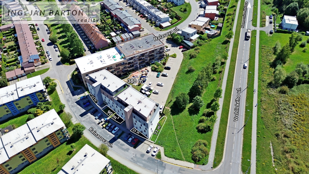V zastoupení majitele nabízím k prodeji 5 pozemků v Jihlavě nedaleko nemocnice. Jedná se menší travnaté plochy (25, 23, 77, 90 m²) kolem domů v ul. Kainarova 71, 73 a travnatá plocha (380 m²) ve vnitrobloku domů Kainarova 71,73 a Halasova 10,12 navazující na parkovací stání zde. Prodej je možný po jednotlivých pozemcích, dělit nebo vyčlenit menší části z celku. Pro více informací mne prosím kontaktujte.