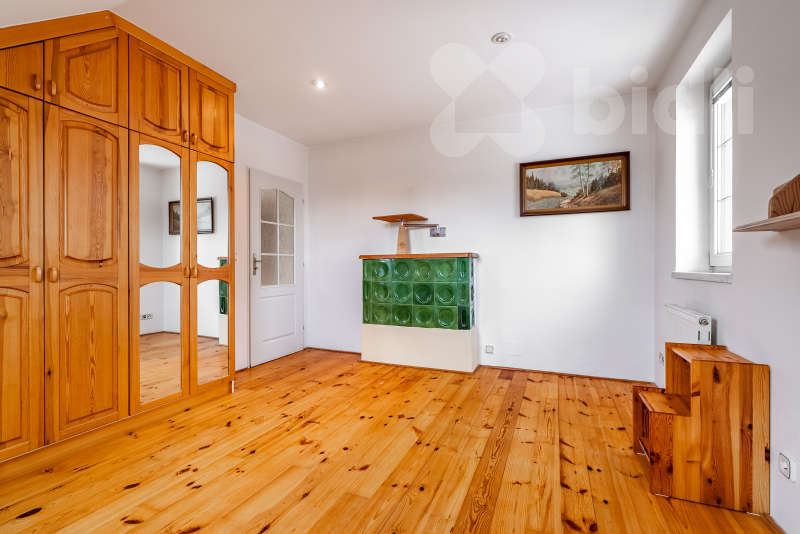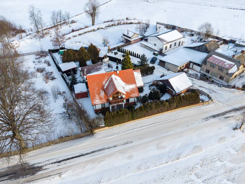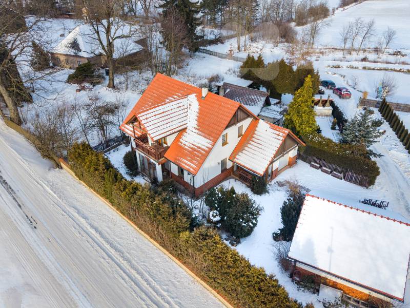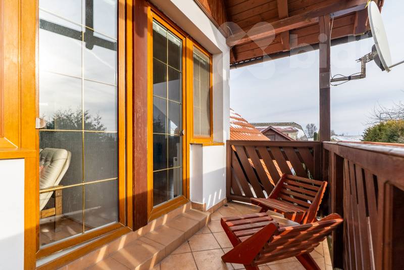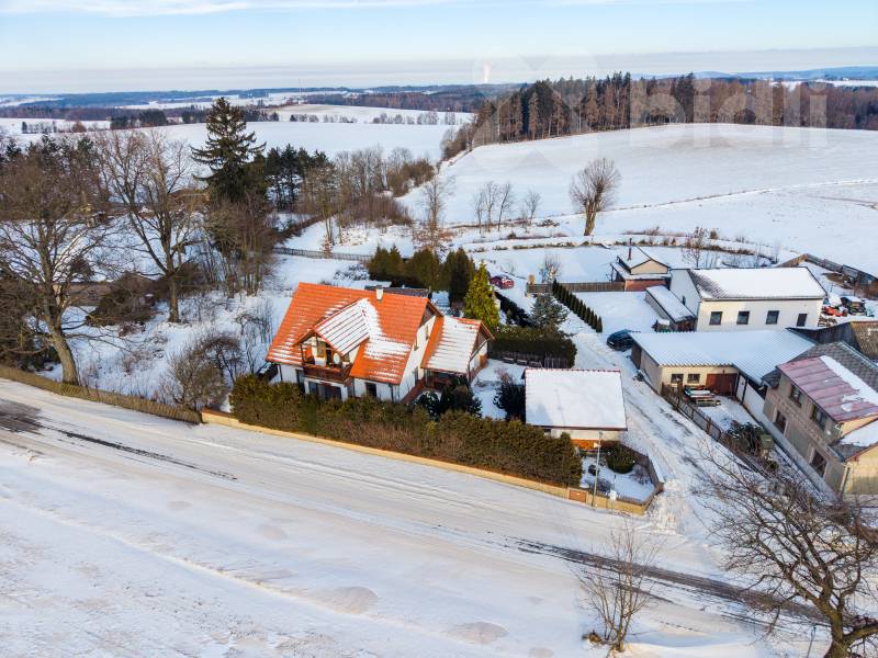 Kdysi stačilo otevřít dveře a vyjít do polí, lesů nebo k potoku a ten pocit tady stále je. V malé obci Jilem, najdete místo, které nabízí poklidný životní rytmus a prostor, o jakém se dnes sní jen těm, kdo ho opravdu hledají. Obec Jilem má kolem 160 obyvatel, což jí dává pocit komunity bez hluku města, přesto je dobře dostupná - přibližně 6 km od Chotěboře, je centrum služeb, škol a kultury. Na adrese Jilem 51 stojí rodinný dům s dispozicí 4+1, který je šikovně navržený pro pohodlný každodenní život i klidné víkendové chvíle se 180 m2 obytné plochy, plus balkon, terasa, garáž a půda. Stavba je cihlová, kompletně napojená na obecní vodovod, elektřinu, plyn a vlastní čističku odpadních vod. Střecha je pokryta pálenými taškami, dům je vytápěn tepelným čerpadlem, což zajišťuje nízké provozní náklady a stabilní teplotu. Teplovodní podlahové vytápění v přízemí a radiátory v podkroví zvyšují komfort, zatímco kachlová kamna ve společenské části přinášejí atmosféru, kterou pocítíte na první dotek. Podlahy jsou řešeny - keramická dlažba v přízemí a koupelnách, dubové parkety v pokojích, garáž a půda s pevným cementovým potěrem. Vnitřní garáž (20 m2), lze využít i jako dílnu nebo pracovnu. Samostatná dvougaráž na pozemku ideální pro auta, hobby vybavení nebo techniku. Parkování až pro 2 auta na vlastním dvorku. Celková velikost pozemku je 586 m2, z toho přes 400 m2 zahrady. To, co dělá tento dům unikátním, není jen dispozice nebo metry - je to okolní svět. Z domu vyjdete a během pár minut jste v lese; vzrostlá zeleň na pozemku, ticho a přírodní scenérie jsou tu součástí každodenního života. Je to polosamota, ale zároveň není zcela izolovaná - sousedé jsou v přiměřené vzdálenosti, což dává prostor dýchat, ale zároveň zachovává pocit bezpečí a sounáležitosti. Les je tu doslova pár stovek metrů od domu a tvoří přirozené pozadí pro procházky, běhání, cyklistiku. Jilem 51 je něco víc než adresou. Je to místo, kde čas plyne jinak: klidněji, pomaleji, bez zbytečného hluku - ale s pohodlím a praktickými detaily, které moderní rodinný život vyžaduje. Tento dům je ideální pro ty, kdo: -chtějí klidnou adresu s přírodou za dveřmi, -ocení prostor, světlo a vzduch, -chtějí komfortní, funkční dům s technickým vybavením, a přesto nemají potřebu být daleko od služeb měst jako Havlíčkův Brod nebo Chotěboř. Pro více informací nebo prohlídku mě kontaktujte - rád vám to místo ukážu osobně.