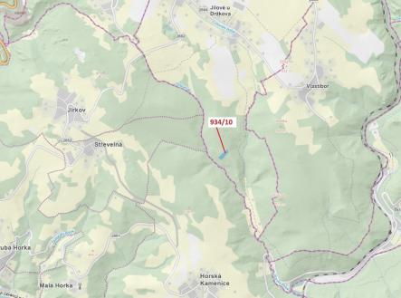 Lesní pozemek o výměře 4 305 m2, parcelní číslo 934/10, podíl 1/1, katastrální území Jílové u Držkova, obec Jílové u Držkova, obec s rozšířenou působností Železný Brod, okres Jablonec nad Nisou, Liberecký kraj.