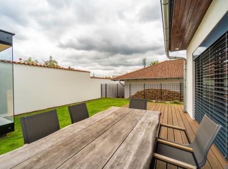 Rádii bychom Vám ke koupi nabídli vysoce nadstandardní a bezúdržbový dům v klidné a slepé ulici Pod Školkou v Jílovém u Prahy. Jedná se o dům, který svým zpracováním inspiruje. Dům nabízíme ke koupi vč. vybavení. Dům je v perfektním stavu, aktuálně je po revitalizaci vnitřních i vnějších prostor. Na rovném pozemku o rozloze 309m2 byl v roce 2015 postaven bezbariérový dům koncipovaný jako 4+KK s terasou, příjemnou zahradou a velkou půdou nad celým obytným prostorem. Zastavěná plocha činí 87m2, zahrada je o výměře 222m2. V roce 2020 došlo k nadstandardní rekonstrukci dle návrhu prestižní architektky Martiny Homolkové. Na zahradě je k dispozici velkoryse pojatá sauna s dílnou. Parkování před domem (na vlastním pozemku) je dostatečně velké pro 4 auta. Za vstupními dveřmi se nachází světlá chodba (3,86m2). Stačí udělat pár kroků a jste ve svém království, kterému vévodí velký obývací pokoj (30,19m2) s jídelnou a kuchyní. Zde je kuchyňská linka na míru se spotřebiči Bosch. Všechny materiály jsou z nadstandardní kategorie a celý prostor působí luxusně, příjemně, čistě a nadčasově. V domě je krásná koupelna se sprchovým koutem a oknem. Světlá, nadčasová a příjemná pro rychlou ranní přípravu i pro večerní odpočinek a péči. V koupelně a na wc je podlahové vytápění. Dále jsou zde tři samostatné, neprůchozí pokoje (11,08m2 + 10,82m2 + 9,56m2). Obytný prostor je světlý mj. díky proskleným dveřím na zahradu. V celém domě jsou venkovní rolety. Upravený trávník, možnost příjemného posezení a naprosté soukromí. Zahrada byla koncipována s ohledem na pohodlnost a praktičnost užívání. K dispozici je automatické zavlažování (retenční nádrž), kamerový systém, bezpečnostní systém, nabíječka na elektroauto. Vytápění a ohřev vody je řešeno kombinovaným plynovým kotlem. Podlahy jsou řešeny zátěžovou epoxidovou stěrkou. Dům je perfektně vyřešen po technologické stránce, vnější i vnitřní prostory jsou řešeny chytře a efektivně, což znamená i velmi slušné náklady na provoz. Na vyžádání rádi zašleme technické plány k domu. Technologicky nadstandardní domy mohou někdy působit chladně a neosobně, ale zde se stavělo s cílem zajistit co nejpříjemnější bydlení. Myslíme si, že se to autorům stavby opravdu povedlo a bude se Vám tady bydlet krásně. Tato část Středočeského kraje je velmi oblíbená díky dobré dostupnosti do Prahy, plné občanské vybavenosti a krásné okolní přírodě. V docházkové vzdálenosti od domu je k dispozici základní škola, mateřská škola, střední škola, lékař, několik restaurací s tradiční kuchyní, kaváren aj. Dům se nachází na příjemném klidném místě, nedaleko centra obce, nedaleko ryzí přírody. Nemovitost nabízíme za 11.499.000,-Kč vč. provize RK a právního servisu. Garantujeme naprosto harmonický převod vlastnického práva k domu (na domě není žádná forma vlastnického omezení) + bezpečný převod kupní ceny - výběr schovatele dle preference klienta.