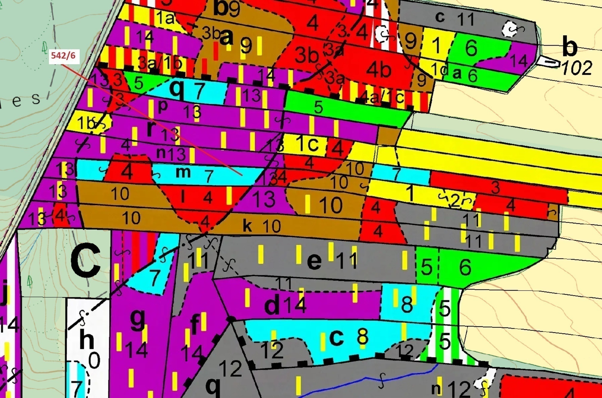 Lesní pozemek o výměře 13 375 m2, parcelní číslo 542/6, podíl 1/1, katastrální území Jílovice u Trhových Svinů, obec Jílovice, obec s rozšířenou působností Trhové Sviny, okres České Budějovice, Jihočeský kraj. Částečně po těžbě.