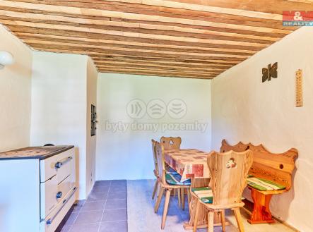Hledáte klid a soukromí po náročném pracovním týdnu? Chcete se ráno probudit a vychutnat si snídani venku na zápraží? Nebo odpočívat ve stínu vzrostlé třesně na houpačce? Pak je tato nabídka určena přímo pro Vás. Exkluzivně nabízíme k prodeji více než 100 let starý dům v okrajové části obce Jílovice. Domek nabízí prostory o výměře 167 m², z toho 73 m² tvoří obytný prostor s dispozicí 3+1 a zbytek je stodola, kterou lze využít k uskladnění sezónních věcí nebo pro další rozšíření obytného prostoru. Nemovitost má suchý sklep, který slouží k uskladnění ovoce a zeleniny, dalším potenciálem je pochozí půda, kterou lze využít jako další možnost pro rozšíření vnitřního prostoru. Plocha udržované zahrady je 718 m² a najdete v ní vzrostlé ovocné stromy a vinnou révu. Dům je napojen na obecní vodovodní řád a kanalizaci, topení kamny na tuhá paliva, elektřina 230 V. Na budově je nová střecha a pozemek je nově oplocen, interiér čeká na rekonstrukci podle představ budoucího majitele.