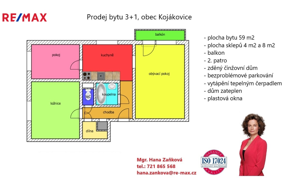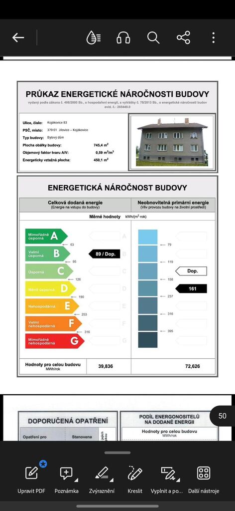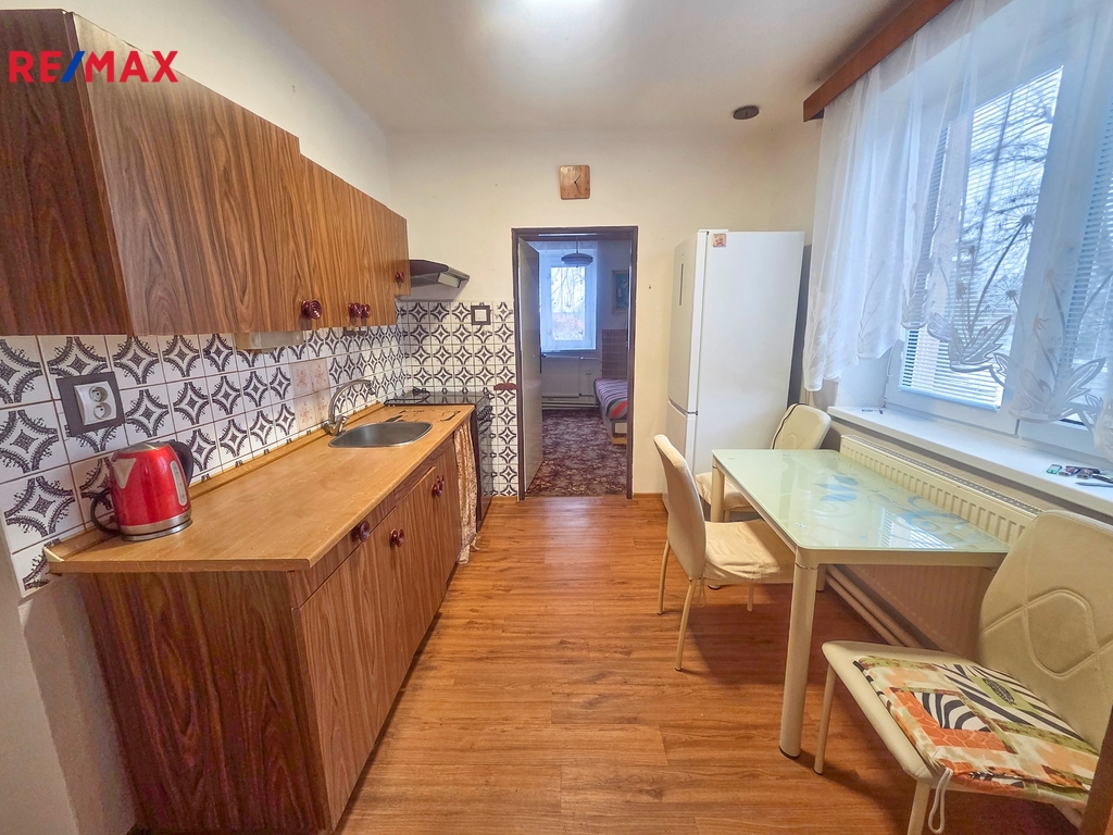 V exkluzivním zastoupení majitelů Vám nabízím ke koupi byt v osobním vlastnictví ve 3.NP (2. patro) v obci Kojákovice, který se nachází přibližně 11 km od Třeboně, 10 km od Borovan a 25 km od Českých Budějovic. Byt je dispozičně řešený jako 3+1 (72 m2 včetně sklepů) a nachází se v 2.patře zděného zrekonstruovaného činžovního domu. Součástí jsou také dva sklepy (12,5 m2). Byt se skládá ze vstupní chodby (3 m2), obývacího pokoje (17 m2), balkonu (2,5 m2), ložnice (14 m2), pokoje (9 m2), kuchyně (9 m2), koupelny s vanou (2m2), WC (1m2), spíže a dílny (2 m2). Dále dva sklepy (8 m2 a 4 m2) v suterénu domu. Dispozice je jasně patrná z přiloženého plánku. Byt je v původním, obyvatelném stavu. Dům je zrekonstruovaný- zateplený (energetická třída B), plastová okna, tepelné čerpadlo pro celý dům. Byt se prodává včetně vybavení (kromě televize). Díky pozemku 1840 m2, který se nachází kolem domu (podíl na pozemku se prodává společně s bytovou jednotkou) není problém s parkováním nebo s dalším možným využitím (trampolína, grilování atd.). Splátka účelového úvěru 2654,- Kč. Byt je volný ihned. Kojákovice jsou malebná a klidná obec, místní část města Jílovice, ležící přibližně 25 km jihovýchodně od Českých Budějovic, 11 km od Třeboně a 10 km od Borovan. Nabízejí příjemné venkovské prostředí, dostatek zeleně, klid a soukromí, a zároveň výbornou dostupnost do města. Obec je ideální volbou pro ty, kteří hledají harmonické bydlení v přírodě, ale nechtějí se vzdát komfortu občanské vybavenosti. Kompletní zázemí poskytují nedaleké Jílovice, kde se nachází mateřská i základní škola, obchody, pošta, lékař, restaurace i další služby. Okolní krajina je jako stvořená pro procházky, cyklovýlety i aktivní odpočinek. Lokalita je vhodná jak pro rodinné bydlení, tak pro rekreační využití. Kojákovice představují ideální spojení klidu venkova s komfortem městské dostupnosti.