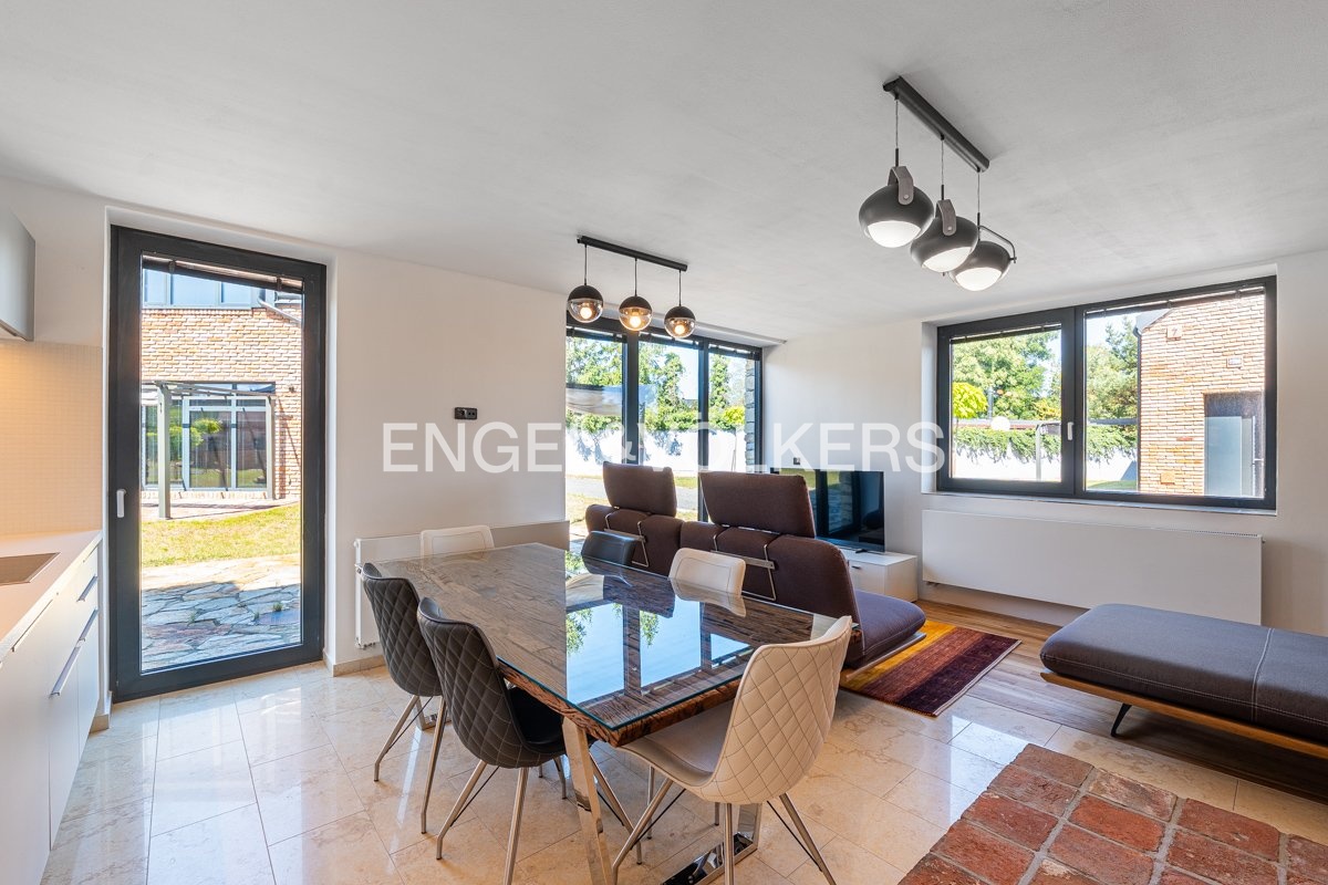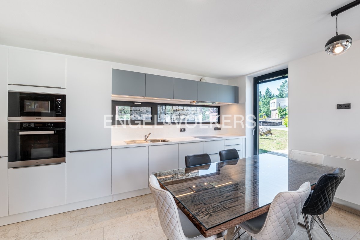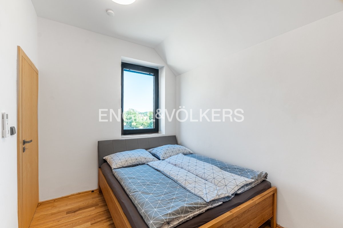 K okamžitému pronájmu Vám nabízíme designový, plně zařízený rodinný dům v resortu Palace Jíloviště. Dům se nachází na rozsáhlém pozemku s pečlivě udržovanou zahradou. Dvoupatrový dům nabízí vstupní halu, světlý obývací pokoj s krbem a plně vybavenou kuchyní na míru. Z obývacího pokoje je vstup na terasu a do velkorysé zahrady. V přízemí dále naleznete pracovnu, technickou místnost vybavenou pračkou a sušičkou a samostatné WC. V horním patře se nacházejí tři prostorné ložnice, každá s vlastní en-suite koupelnou. Dům je kompletně zařízen kvalitním nábytkem a proveden ve velmi vysokém standardu: podlahy z jasanu a přírodní břidlice, hliníková okna s trojskly, předokenní žaluzie, klimatizace, tepelné čerpadlo, teplovzdušný krb, sanita Villeroy & Boch a kuchyňské spotřebiče Miele. Nájemníkům budou k dispozici parkovací stání na pozemku. Výhodou je i možnost využívání posilovny a sauny ve vedlejším resortu. Klidná lokalita nabízí rychlé spojení do Prahy, cca 20 minut na Smíchov. Nájemné činí 70 000 Kč měsíčně. Zálohy na služby a energie jsou ve výši 10 000 Kč/měsíc. Vratná kauce je ve výši dvou měsíčních nájmů. Provize realitní kanceláři je jeden měsíční nájem + DPH.