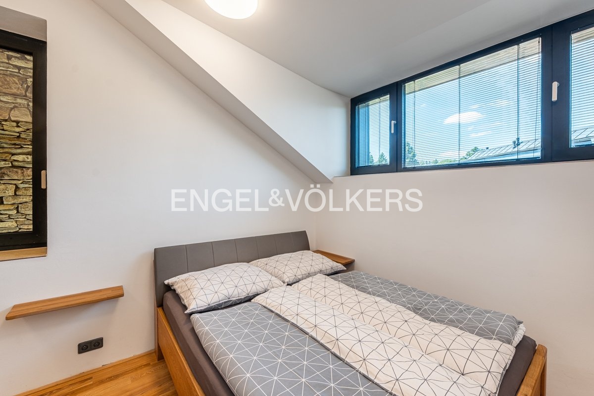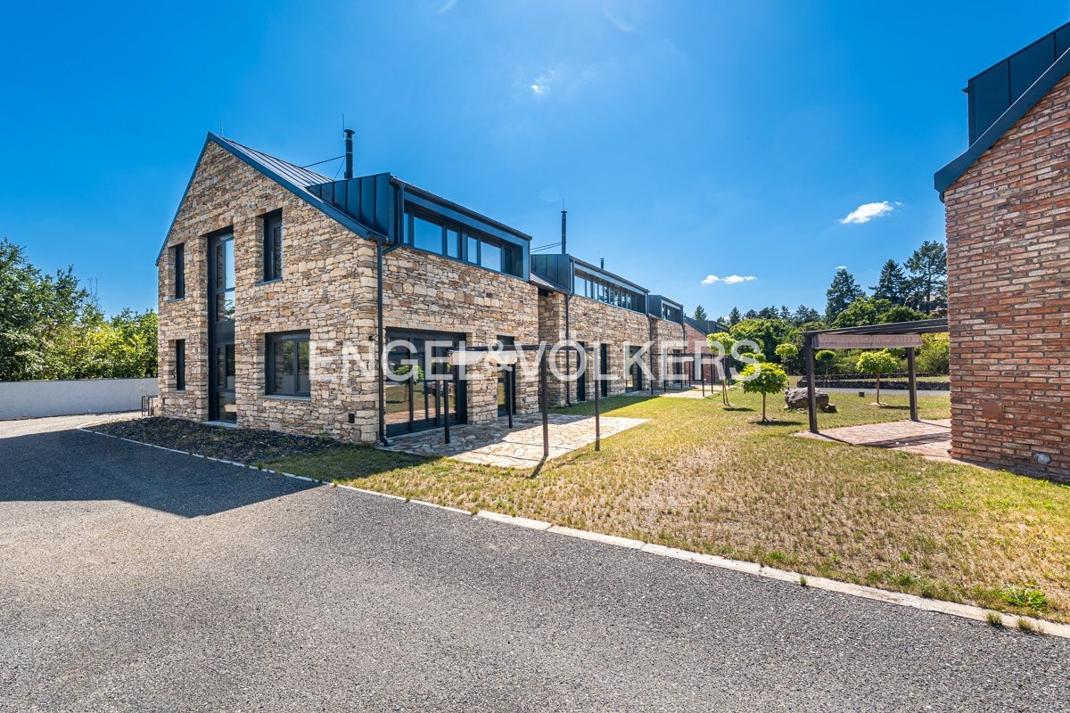 K okamžitému pronájmu Vám nabízíme designový, plně zařízený rodinný dům v resortu Palace Jíloviště. Dům se nachází na rozsáhlém pozemku s pečlivě udržovanou zahradou. Dvoupatrový dům nabízí vstupní halu, světlý obývací pokoj s krbem a plně vybavenou kuchyní na míru. Z obývacího pokoje je vstup na terasu a do velkorysé zahrady. V přízemí dále naleznete pracovnu a samostatné WC. V horním patře se nacházejí tři prostorné ložnice, každá s vlastní en-suite koupelnou. Dům je kompletně zařízen kvalitním nábytkem a proveden ve velmi vysokém standardu: podlahy z jasanu a přírodní břidlice, hliníková okna s trojskly, předokenní žaluzie, klimatizace, tepelné čerpadlo, teplovzdušný krb, sanita Villeroy & Boch a kuchyňské spotřebiče Miele. Nájemníkům budou k dispozici parkovací stání na pozemku. Výhodou je i možnost využívání posilovny a sauny ve vedlejším resortu. Klidná lokalita nabízí rychlé spojení do Prahy, cca 20 minut na Smíchov. Nájemné činí 85 000 Kč měsíčně. Zálohy na služby a energie jsou ve výši 10 000 Kč/měsíc. Vratná kauce je ve výši dvou měsíčních nájmů. Provize realitní kanceláři je jeden měsíční nájem + DPH.