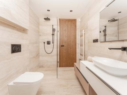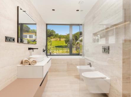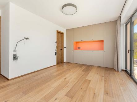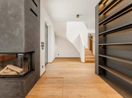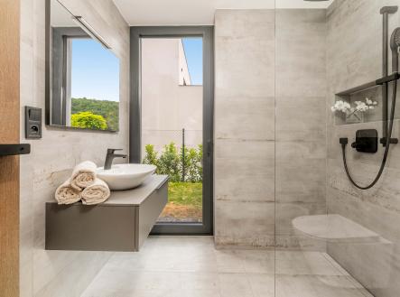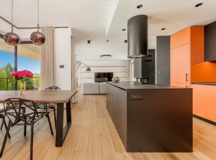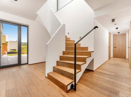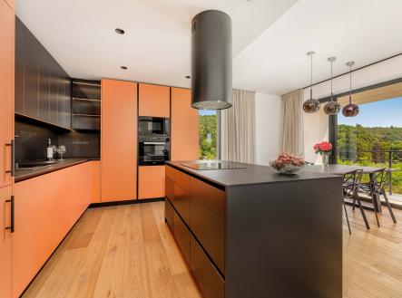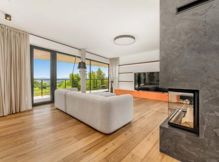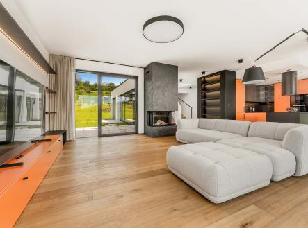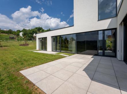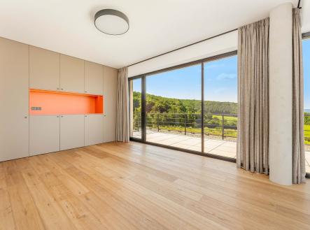 Exkluzivní nabídka jedinečné nemovitosti v nadčasovém architektonickém provedení. Na stavbě jsou patrné čisté linie funkcionalismu, avšak s útulnými prvky v interiéru. Novostavba vily je citlivě umístěna v mírně svažitém terénu pozemku s překrásnými panoramatickými výhledy do okolní krajiny. Byla vystavěna dle návrhu současného předního architekta Martina Kareše a byla realizována stavební společností ORAK. Orientace: společenská část domu včetně teras je orientována na jih. Kolaudační řízení právě probíhá. Vila je situována na krásném a klidném místě, vhodném jak pro bydlení, tak i pro podnikání. Pozemek o výměře 934 m2 má ideální tvar obdélníku. Uliční šíře 20 m x délka 45 m. Užitná plocha celkem: 239,3 m2 podlahová plocha + 119,3 m2 terasy + 773 m2 zahrada Možné rozšíření vily směrem do zahrady. Počet podlaží: 3 Dispozice 4+kk: 1.PP – dvojgaráž, posilovna/pracovna, technická místnost, komora, chodba 1.NP – zádveří, hala, chodba, koupelna s WC, prádelna/sušárna (může sloužit i jako šatna), obývací pokoj s jídelním a kuchyňským koutem (60 m2), 2 pokoje 2.NP – chodba, 1 ložnice, koupelna s WC Celou budovu lemují terasy s designovým večerním osvětlením navazující na obytný prostor. Ze všech pokojů je možné bezbariérově vstoupit na terasy nebo zahradu. Za domem je vyvedena příprava pro venkovní bazén a venkovní kuchyni. Parkování: 4 parkovací stání - 2 ve dvojgaráži a další 2 na pozemku. Garáž na dálkové ovládání (zn. Hörmann), je vytápěna a disponuje řízeným odvětráváním. Dům je vybaven podlahovým topením a příprava na klimatizaci je přivedena do každého pokoje. Vytápění plynem – plynový kotel Wolf, NET - optický kabel, elektronické zabezpečení Jablotron. K výstavbě vily byly použity technologicky pokročilé stavební a izolační prvky. Prvotřídní je i zpracování interiéru, což se týká jak vkusně zvolených materiálů, tak zařizovacích předmětů nejvyšší kvality. Okrasná zahrada je čerstvě osázena dřevinami a bude nabízet dostatek soukromí pro klidný odpočinek a relaxaci. Tento moderní dům zaujme nejen svou polohou na okraji obce, v blízkosti lesa a zároveň v sousedství Golf resortu Kaskáda, ale také vysokou úrovní bydlení, kterou umožňuje. Designem a kvalitou provedení vila uspokojí požadavky i těch nejnáročnějších klientů. Bližší informace a termín osobní prohlídky si můžete dohodnout v RK.