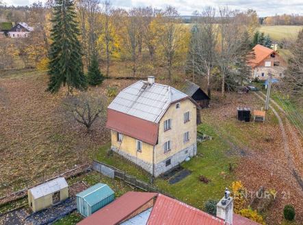 Prodej rodinného domu (100 m2) s velkým pozemkem (1861 m2), Háj u Jindřichovic.