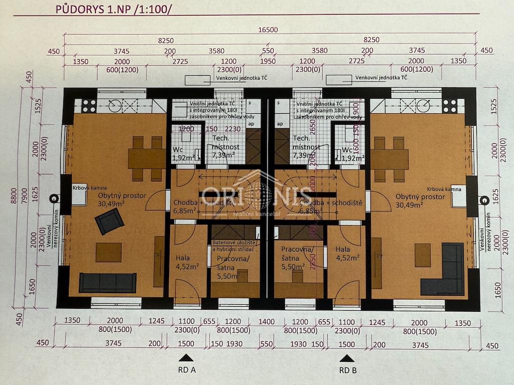 Novostavba domu - rozestavěnost, moderní bydlení s nízkými náklady, Jirkov. ulice Pod Vrchem . K prodeji nabízíme samostatnou polovinu moderního dvojdomu o velikosti 5+KK. Cena zahrnujte tepelné čerpadlo, Jedná se o zařízení bez montáže . Pokud hledáte bydlení, které spojuje výhody rodinného domu s úspornější investicí, tato nabídka je právě pro vás. Prodává se pouze jedna část dvojdomu, a to ve fázi rozestavěnosti máte tak možnost dotvořit interiér i exteriér zcela podle vlastních představ. Každá jednotka má samostatný vstup, zahradu i parkovací stání, což zajišťuje plné soukromí a pohodlí. Díky chytrému dispozičnímu řešení je dům ideální pro rodinu, pár i ty, kteří chtějí skloubit klidné bydlení s moderním stylem. Dispozice 1. NP: prostorný obývací pokoj s přípravou na krbová kamna (30,49 m) kuchyňský kout s jídelnou pracovna/šatna (5,50 m) vstupní hala (4,52 m) chodba se schodištěm (6,85 m) technická místnost (7,39 m) samostatné WC (1,92 m) Podkroví: 3 x pokoj, koupelna, chodba Další informace: Dům již disponuje : elektroinstalací, voda z řadu, kanalizace, střešní krytina, okna, fasáda energeticky úsporný dům s přípravou na tepelné čerpadlo a fotovoltaické panely moderní architektura se sedlovou střechou a francouzskými okny pozemek s místem pro parkování terasa s orientací na zahradu Dům nabízí ideální řešení pro vícegenerační bydlení, kombinaci bydlení a podnikání, nebo jako investici do nájemního bydlení. Cena i detaily dokončení jsou k jednání.