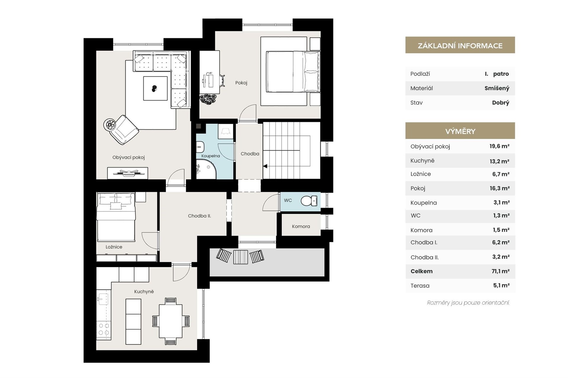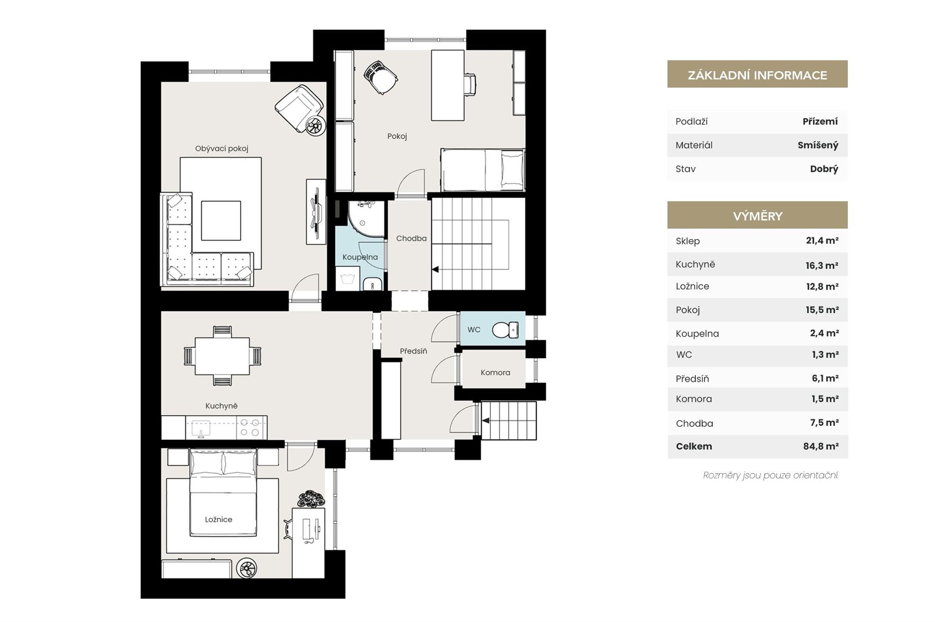 Hledáte opravdu prostorný rodinný dům, kde bude mít každý člen rodiny své místo, velkou zahradu pro děti a zároveň praktické zázemí pro každodenní život? Právě takovou nemovitost nabízíme v klidné části obce Jirny u Prahy. Nabízíme k prodeji velmi prostorný rodinný dům o užitné ploše 230 m² se zahradou a celkovým pozemkem 1 063 m². Nemovitost nabízí komfortní rodinné bydlení na velkorysém pozemku, který poskytuje dostatek prostoru pro soukromí, zahradní úpravy, relaxační zónu, bazén či další doplňkové stavby sloužící k užívání domu. Dům zároveň poskytuje velkorysý prostor s potenciálem úprav dle vlastních potřeb budoucího majitele a umožňuje postupnou modernizaci přesně podle individuálních představ. Dispozice domu je ideální i pro vícegenerační bydlení nebo rozdělení na dvě samostatné jednotky, například pro kombinaci vlastního bydlení a pronájmu. Dům má dvě nadzemní podlaží. V přízemí se nachází čtyři místnosti, z nichž tři jsou neprůchozí, což poskytuje dostatek soukromí pro jednotlivé členy rodiny. V patře je obývací pokoj, dvě ložnice, kuchyň a koupelna. V každém podlaží je k dispozici koupelna i samostatné WC, což výrazně zvyšuje komfort užívání domu. Nemovitost je téměř celá podsklepená a nabízí dostatek skladovacích prostor, technické zázemí i možnosti pro hobby či domácí dílnu. V posledních letech prošel dům řadou důležitých technických úprav, které výrazně zlepšily jeho technický stav – nové rozvody elektřiny a odpadů, výměna oken (2023), instalace nového plynového kondenzačního kotle Bosch včetně komína (2023), nová střecha na garáži (2023), úpravy terasy a balkonu a další technická vylepšení. V roce 2024 byl realizován také nový rozvod umožňující přepínání mezi obecním vodovodem a vlastní studnou. Díky tomu je dům technicky ve velmi dobrém stavu a další případné úpravy jsou již převážně kosmetického charakteru. Na pozemku se nacházejí dvě garáže, dílna a další samostatný objekt, který může sloužit jako sklad, hobby prostor, domácí fitness nebo například budoucí wellness zóna. Velká zahrada poskytuje dostatek prostoru pro rodinné aktivity, dětské hřiště i relaxační část pro posezení s rodinou a přáteli. Velkou výhodou je také zadní příjezd na zahradu, který výrazně zvyšuje praktičnost užívání pozemku. Dům je napojen na veřejný vodovod, kanalizaci, elektřinu i plyn. Internetové připojení je řešeno bezdrátově. Obec Jirny nabízí kompletní občanskou vybavenost a zároveň velmi dobré dopravní spojení do Prahy, což činí nemovitost ideální jak pro komfortní rodinné bydlení, tak i jako dlouhodobou investici. V případě zájmu Vás velmi rádi přivítáme na osobní prohlídce a pomůžeme také se zajištěním financování.