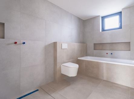 Jedinečná příležitost udělat si nový domov dle svých vlastních představ! Hledáte moderní a úsporné bydlení v přírodě, a přitom s výbornou dostupností do města? Pak vás zaujme tato jednotka v novém dvojdomě v Jizerním Vtelně. Jedná se o komfortní novostavbu typu 4+kk s užitnou plochou 98 m², která spojuje klid venkovského života s pohodlím současného standardu. Nachází se na okraji obce, obklopena zelení, a přesto jen pár minut jízdy od Mladé Boleslavi či dálnice D10. Tento dům je ideální pro ty, kdo hledají kvalitní bydlení s nízkými provozními náklady, zahradou o rozloze 337 m² a praktickým dispozičním řešením pro rodinu, pár i jednotlivce. Dispozice a vybavení domu Uvnitř domu vás přivítá otevřený obývací prostor s kuchyňským koutem, jehož velká okna propouštějí dostatek denního světla a propojují interiér s terasou a zahradou – ideálním místem pro relaxaci, dětské hry nebo letní grilování. Kuchyňský kout je připraven pro realizaci vaší vysněné kuchyně na míru. Dále v přízemí najdete koupelnu s vanou a toaletou, technickou místnost s místem pro pračku a sušičku, a samozřejmě vstupní zádveří. Jsou zde i tři neprůchozí pokoje, které lze využít jako ložnici, dětské pokoje, pracovnu nebo pokoj pro hosty. Technické řešení Dům je stavěn s důrazem na energetickou efektivitu a kvalitu provedení: Zdivo a fasáda: Ytong + zateplení fasádním polystyrenem 160 mm, sokl XPS 160 mm, fasádní silikonová stěrka Weber 1,5 mm, betonová stěrka Ceresit Střecha: KVH konstrukce, OSB desky, parozábrana, EPS spádové klíny, PVC fólie Protan 1,6 mm Okna a dveře: Plastová okna a dveře PKS 88 se sedmikomorovým profilem a trojsklem Vytápění: Teplovodní podlahové rozvody v celém domě, tepelné čerpadlo Protherm Podlahy: Anhydritová litá podlaha (50 mm), dvouvrstvá tepelná izolace EPS 100 (2x 100 mm) Stropy: Sádrokarton s izolací 150 mm Elektroinstalace: Spínače a zásuvky ABB Levit Podlahové krytiny a obklady: Rektifikovaná keramická dlažba Rako Betonico, včetně designových prvků (kamenické rohy, osvětlené niky) Úsporný provoz a moderní standard Dům je navržen tak, aby splňoval současné nároky na nízkoenergetické bydlení. Díky kvalitní izolaci, trojsklům a modernímu tepelnému čerpadlu se můžete těšit na nízké provozní náklady. Samozřejmostí je příprava pro venkovní žaluzie i možnost instalace fotovoltaiky. Klidné bydlení s výbornou dostupností Jizerní Vtelno je ideálním místem pro rodiny, které hledají bezpečné a příjemné prostředí pro život. V obci najdete základní občanskou vybavenost, větší nákupy či služby vyřídíte do 10 minut v Mladé Boleslavi. Okolní krajina nabízí příležitosti k procházkám, cyklovýletům i aktivnímu odpočinku. Zaujala vás tato nabídka? Přijďte se podívat osobně! Rádi vám nemovitost ukážeme a zodpovíme veškeré vaše dotazy.