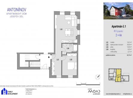 Apartmán A1 – 2+kk, 63,7 m², 1.NP – Antonínov, Jizerské hory