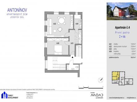 Apartmán A4 – 2+kk, 56,6 m², 2.NP – Antonínov, Jizerské hory