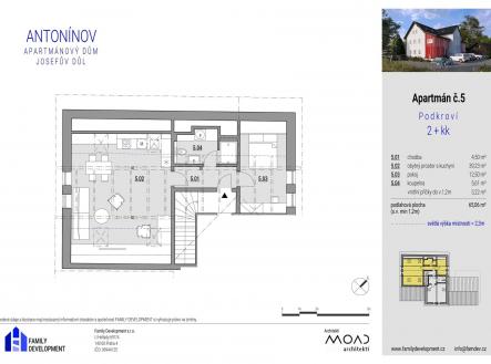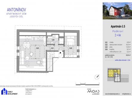 Apartmán A5 – 2+kk, 65,1 m², podkroví – Antonínov, Jizerské hory