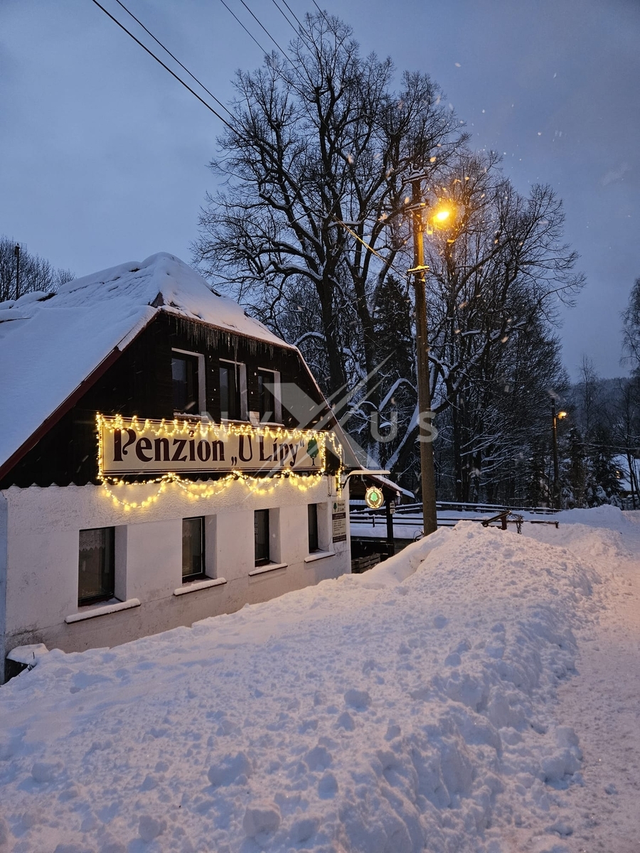 Nabízíme k prodeji velmi prostorný dům, který aktuálně slouží jako zavedený penzion U lípy. Stojí na krásném pozemku 1217 m2 v obci Josefův Důl, okres Jablonec nad Nisou. Podél pozemku teče zregulovaný potok Jedlová, kde žijí pstruzi. Díky vysokým stromům nabízí objekt absolutní soukromí. Penzion má aktuálně kapacitu 30 pevných lůžek celkem v osmi útulných pokojích a apartmán pro majitele a může být snadno přebudován na pohodlné ubytování pro větší rodinu. Dispozice přízemí zahrnuje halu, profesionálně vybavenou kuchyni, společenskou místnost s barem, a dva pokoje s vlastními koupelnami a WC. Dále se zde nachází samostatné WC a sklad pro lyže či kola. V patře domu jsou dvě koupelny a WC, šest pokojů a samostatný apartmán 2 (3) + 1 s koupelnou, vanou a WC, ze kterého je krásný výhled na přilehlý splav. Dům byl částečně modernizován, což zahrnuje zavedení plynu, nové rozvody vody a elektřiny, výměnu většiny oken a nové okapy. Součástí domu je prostorný kamenný sklep a vnější plášť domu je vhodný pro rekonstrukci. V letním období přijde vhod koupání v nedalekém přírodním koupališti, děti si užijí zábavu na pískovišti a prolézačkách v areálu penzionu, zatímco rodiče si mohou posedět na terase s pohledem na protékající potok Jedlová. Večer si pak společně můžete opéct špekáčky na ohništi. V zimě si zalyžujete na místním vleku Bukovka nebo v lyžařském areálu Lucifer, který poskytuje veškeré zázemí, vybavení a služby hlavně pro rodiny s malými dětmi a nenáročné lyžaře. Zdatnější lyžaři, ale i rodiny s dětmi, si mohou zajet skibusem, vlakem nebo vlastní dopravou do nedalekých Albrechtic do velkého lyžařského areálu Tanvaldský Špičák s několika vleky, sedačkovými lanovkami a kompletním zázemím pro rodiče i děti. Pro milovníky běžek je pak na dosah obec Bedřichov, odkud je ideální nástup do běžeckých stop Jizerské magistrály. PENB nebyl dodán, proto prozatím uvádíme třídu G. Přijeďte se podívat, rádi vám vše ukážeme!