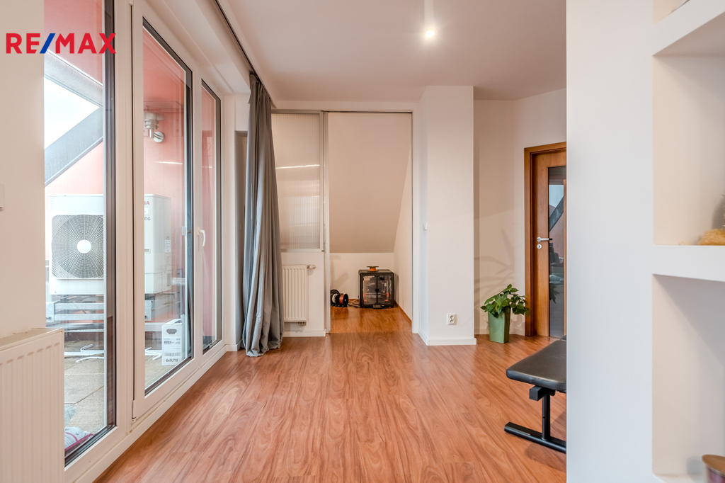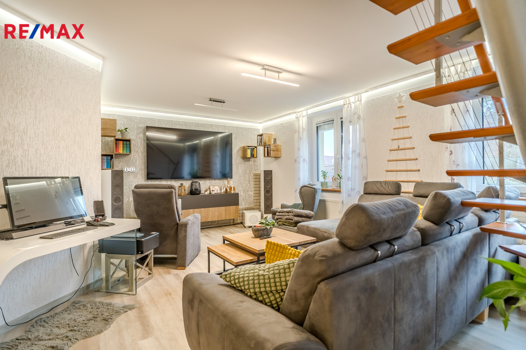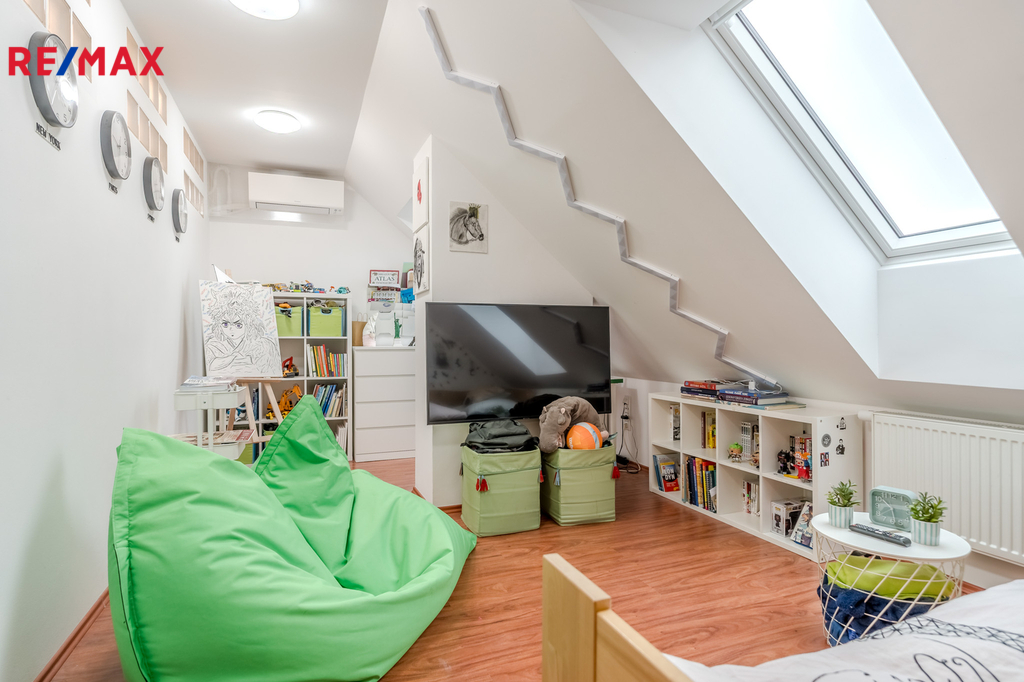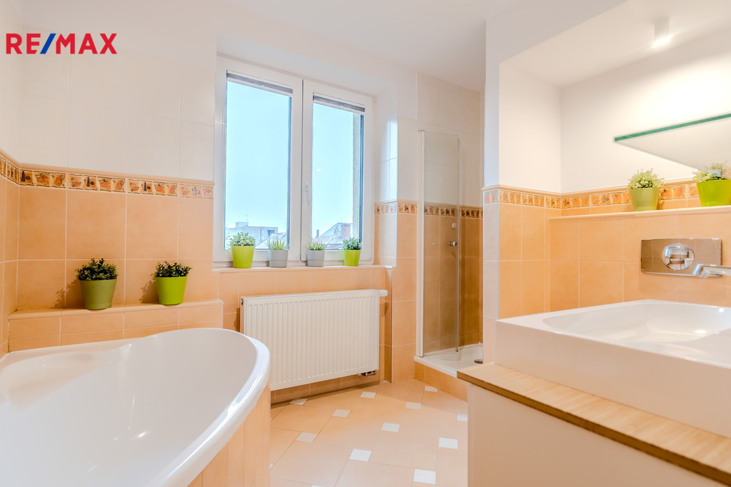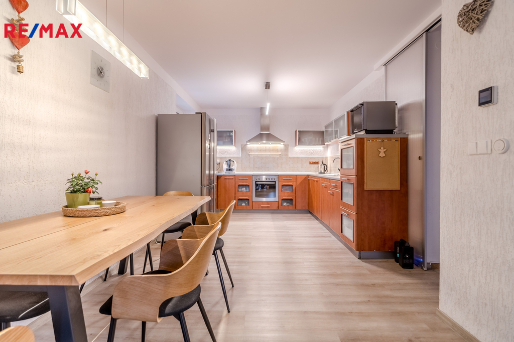 Hledáte bydlení, které spojuje moderní technologie, dostatek prostoru, klid a zároveň skvělou dostupnost do centra města? Tento výjimečný mezonetový byt o dispozici 4+kk v ulici Dvořákova v Kadani nabízí vše, co si náročnější zájemce může přát – styl, komfort, úspornost i kvalitní zázemí pro rodinný život. Byt se nachází ve 3. nadzemním podlaží zatepleného domu bez výtahu a prošel kompletní rekonstrukcí včetně všech rozvodů. K bytu náleží terasa o výměře 9 m², sklep, komora a parkovací stání. Celková podlahová plocha činí 174 m², z toho spodní část má 95.27 m² a horní 78.78 m². Při vstupu do bytu vás přivítá prostorná chodba, z níž se vchází do ložnice a do technické místnosti, kde je umístěno ovládání fotovoltaické elektrárny a dalších systémů. Dále se dostanete do moderní kuchyně propojené s obývacím pokojem, který je centrem rodinného života. Kuchyň je vybavena sklokeramickou deskou, myčkou, elektrickou troubou a digestoří. Ve spodní i horní části bytu se nachází koupelna s vanou, sprchovým koutem, umyvadlem a toaletou. Obě koupelny mají podlahové vytápění a jsou vybaveny závěsnými toaletami Geberit. V horním patře se dále nachází dva dětské pokoje, vstup na terasu ideální pro letní posezení či grilování a komora, která poslouží jako praktický úložný prostor. Byt je vybaven nejmodernějšími technologiemi, které zajišťují nejen vysoký komfort, ale i úsporný provoz. O vytápění a ohřev vody se stará tepelné čerpadlo TOSHIBA vzduch–voda, doplněné o fotovoltaickou elektrárnu s výkonem 4,6 kWp a bateriovým úložištěm o kapacitě 9,6 kWh. Díky tomu jsou provozní náklady na bydlení velmi nízké, přibližně 7 000 Kč měsíčně. Klimatizace značky DAIKIN zajišťuje příjemnou teplotu i v horkých dnech, přičemž okna s trojskly, předokenní žaluzie SOMFY s větrným a slunečním čidlem a motoricky ovládaná střešní okna VELUX přispívají k dokonalému komfortu. Střešní okna mají také předokenní rolety s dálkovým ovládáním. Na francouzských dveřích s úpravou SOLARSTOP oceníte vnitřní stínění, které lze ovládat motoricky, a na terase je umístěna manuálně výsuvná markýza. Byt má dále datové rozvody, elektronické zabezpečení vstupních dveří a je připojen na všechny inženýrské sítě včetně plynu, jehož přívod zůstává v technické místnosti zachován. Nemovitost se nachází v klidné části města Kadaň, v ulici Dvořákova, pouhé tři minuty jízdy od Mírového náměstí. Lokalita nabízí veškerou občanskou vybavenost v bezprostřední blízkosti – obchody jako Lidl, Penny, Kaufland či obchodní centrum, základní a mateřské školy, střední školy a učiliště, poštu, sportovní a dětská hřiště i restaurace. Zastávka MHD je vzdálená jen 3 minuty chůze. Tento byt je díky své velikosti, promyšlené dispozici a nadstandardnímu vybavení ideální jak pro rodinu, tak pro ty, kteří hledají prostorný a reprezentativní byt s moderním zázemím. Pokud vás nabídka zaujala, neváhejte mě kontaktovat a domluvte si osobní prohlídku.