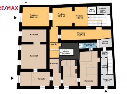 Prodej obchodního prostoru 466 m2, Mírové náměstí, Kadaň