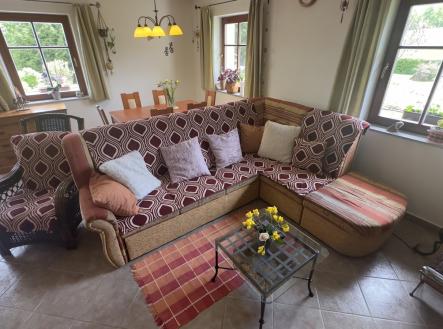 Stavba byla kolaudována v roce 2008, první majitel. Z hlediska architektury se jedná o prostorný jednogenerační/dvougenerační dům, dvoupodlažní, s využitím podkroví. Díky poloze je možnost využití k bydlení, chalupa - rekreace, pronájem apartmánů - investice. Dům ve tvaru L má dva hlavní vchody, ze západní strany a ze severní strany, přístřešek pro dvě auta (2008), garáž, zahradní domek (2008). 1. Hlavní vstup (západ – levé křídlo) do obytné časti s dispozicí 5KK, šatna, garáž, kotelna, půda. Při vstupu vcházíte skrze příjemné zádveří, vlevo šatna, vpravo koupelna se sprchovým koutem, WC, hala, obývací pokoj s kuchyní (26 m2 se vstupem na terasu), 2NP – 2 x prostorný pokoj (2x 15m2), koupelna s vanou, WC, ložnice – cca 12 m2, pokoj - 14m2, kotelna, garáž (26,4 m2 – průchozí do domu). 2. Hlavní vstup (sever – pravé křídlo) do obytné části s dispozicí 3KK, předsíň, koupelna, WC. Vstup prostorným proskleným zádveřím, předsíň, hala, obývací pokoj (se vstupem na terasu), kuchyně, koupelna s WC, 2NP – pokoj (22 m2), WC, technická místnost/šatna. Stavebně technické informace pošleme na vyžádání. Stavba se rozprostírá na pozemkovém souboru o celkové výměře 1.879 m2. Dům je umístěný na jihozápadní části osady, s krásným výhledem do krajiny. Jedná se o velmi klidné místo obklopené lesy a přírodou CHKO Blanský les a CHLÚ Křenov. Český Krumlov 5km, Kleť 10km, Šumava- Lipno nad Vltavou 35km. Doporučuji osobní prohlídku, ta často odhalí věci, které na fotkách nebo v popisu nejsou vidět – atmosféru místa, kvalitu stavby nebo třeba klid v okolí, soukromí na konci návsi. Těšíme se na vás.