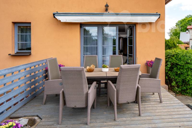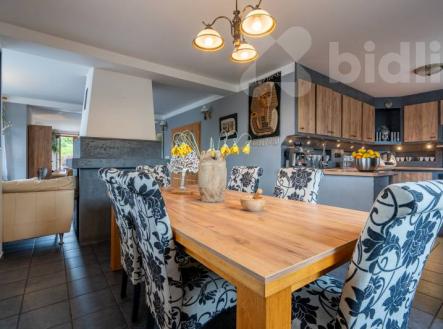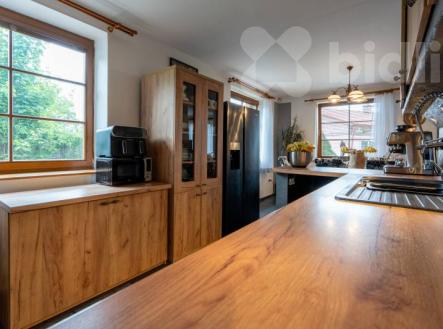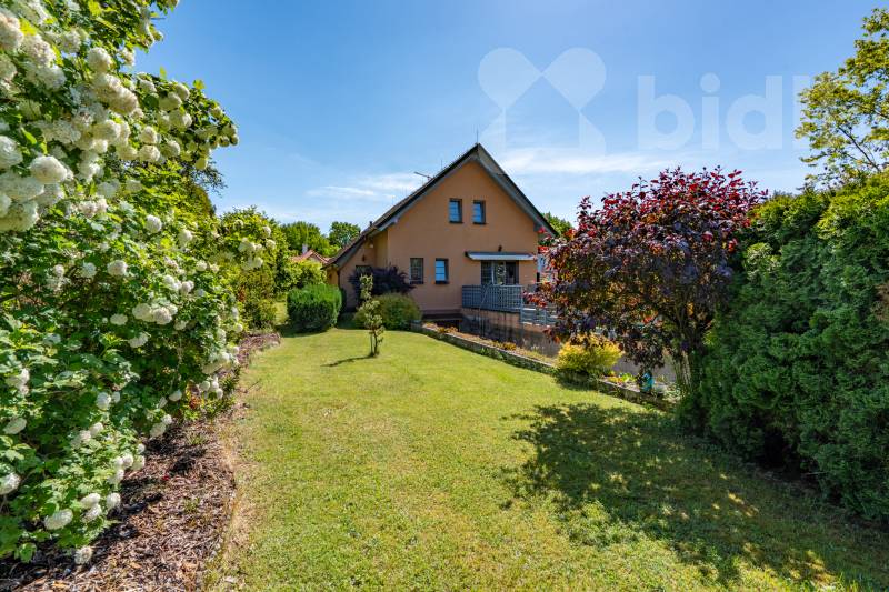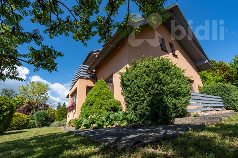 Chytrý a soběstačný dům. Exkluzivně vám nabízím jedinečný rodinný dům 6+1 v klidné a malebné lokalitě údolí Kamenice Ládví. Dům s obytnou plochou 214 m2 a celkovou podlahovou plochou 314 m2 kolaudovaný v roce 2001 je postavený uprostřed přírody a zároveň nabízí skvělé napojení na městskou infrastrukturu. Krásná opečovávaná zahrada 1.128 m2 vybízí k odpočinku i zábavě. Dům má sedm pokojů a jednu kuchyň, dvě koupelny s vanou a sprchovým koutem a toaletou, plus jednu toaletu v přízemí pro návštěvy. Vedle ložnice v přízemí a ložnice v patře je šatna. Kuchyň je vybavena kvalitními vestavěnými spotřebiči, jako je elektrická trouba, varná deska, digestoř a myčka nádobí. Vytápění zajišťuje tepelné čerpadlo s vrtem o hloubce 100 m, které je doplněno o krb s teplovodním výměníkem. V celém domě je podlahové topení, včetně suterénu, a zajišťuje tak rovnoměrné a komfortní teplo po celý rok. Dům je vybaven chytrou domácností, i solárním ohřevem vody. Vlastní vrtaná studna a čistička odpadních vod pak zajišťují nezávislost na veřejných rozvodech. V domě je centrální vysavač. Dřevěná eurookna jsou vybavena roletami. V suterénu domu se nachází prostorný sklep, technická místnost, prádelna se sušárnou a garáž pro dvě auta. Na pozemku je ještě dostatek místa pro parkování dalších vozidel. Průkaz energetické náročnosti C. Přijďte se podívat a zažít, jaké to je žít v domě, který spojuje pohodlí, moderní technologie a blízkost přírody.