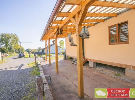 Rodinný dům se nachází na adrese Ládeveská 270, Ládeves (správu vykonává obec Kamenice). Ládeves je osadou rodinných domů užívaných k trvalému bydlení. Je velmi dobře dopravě dostupná po tzv. Staré Benešovské, tedy od Prahy směr Jesenice, Kamenice, Ládví nebo po dálnici směr Velké Popovice a dále směr Štiřín. Osada je obklopena lesní oborou Vlková s nejvyšším bodem Vlková 521 m.n.m. V těsném sousedství jsou rodinné domy užívané k trvalému bydlení nebo pastviny pro koně, což je pro toto místo typické. Též z terasy rodinného domu je volný výhled přes pastviny a údolí na zalesněné kopce Středočeského kraje. Jedná se o velmi klidné místo s minimem dopravy, není zde veřejné osvětlení, a tak i světelného smogu je zde minimum. Výstavba rodinného domu byla dokončena v roce 2023. Dřevostavba vystavěná v energetické třídě A nabízí dispozici 3+KK s užitnou plochou 102 m2. Dispoziční plán domu přikládáme do fotodokumentace této inzerce. Promyšlená dispozice obsahuje technickou místnost, spíž i šatnu, tedy dostatek úložných prostor mimo obytné místnosti; dále obsahuje obývací pokoj 46 m2 s francouzským oknem a výhledem do krajiny; součástí jsou dvě koupelny, ta první se nachází u ložnic, ta druhá je přístupná ze zahrady (při pobytu venku máte k dispozici sprchový kout i WC). V celém domě je příjemné podlahové topení, v obývacím pokoji je možné topit též kamny. Dále se na pozemku nachází samostatná stavba hobby domku, která obsahuje dvě místnosti, každá s výměrou 20 m2. Na hobby domek navazují krytá parkovací stání. I tato stavba je napojena na rozvod topení z tepelného čerpadla, a tak je možné místnosti temperovat, případně je k dispozici komínové těleso s kamny. Roční vyúčtování spotřeby elektřiny dokládá spotřebu 3.000 Kč / měsíc (kompletní energetická náročnost = vytápění, ohřev užitkové vody, svícení, vaření a další běžná spotřeba rodinného domu užívaného k trvalému bydlení). Kamna v obývacím pokoji byla využívána jen občas, vytápění domu v zimních měsících tedy nebylo za pomoci tuhých paliv. Přípojka elektrické energie s jističem 3 x 25 A, odpad je vyřešen čistírnou odpadních vod s retenční nádrží a voda je čerpána z vlastní vrtané studny (případně lze uvažovat o připojení na nedaleký vodovodní řad). Nemovitost ve vlastnictví jediného vlastníka, bez právních omezení (též bez hypotečního úvěru), po prodeji volná k nastěhování. Je zde možnost dokoupení přilehlého stavebního pozemku (od stejného vlastníka) o výměře 1.034 m2 za cenu 6.340.000 Kč.