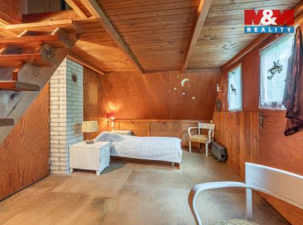 Nabízíme k prodeji dřevěnou chatu o užitné ploše 69 m² na vlastním pozemku o výměře 492 m² v klidné a vyhledávané lokalitě obce Kamenný Újezdec v okrese Praha-západ. Chata se nachází v příjemném prostředí nedaleko řeky Sázavy, mimo záplavovou oblast. S chatou se prodává i podíl na příjezdové cestě. Do chaty je zavedena elektřina (230/400 V), voda je přivedena z obecního vodovodu a odpad je sveden do jímky. Ohřev vody zajišťuje elektrický bojler, vytápění je možné kamny na dřevo nebo elektrickým přímotopem. Dispozičně je chata řešena ve třech podlažích. V 1.NP se nachází veranda, obývací místnost s litinovými kamny, menší ložnice, toaleta a kuchyňka s komorou se vstupem do sklepní spižírny (cca 4 m²). Ve 2.NP se nachází prostorná ložnice s balkónem a koupelnou se sprchovým koutem a umyvadlem. Ve 3.NP jsou dva menší pokojíky. Na zahradě je k dispozici kůlna (cca 5 m²), venkovní krb a udírna, ideální pro víkendový odpočinek. Financování lze hypotečním úvěrem.
