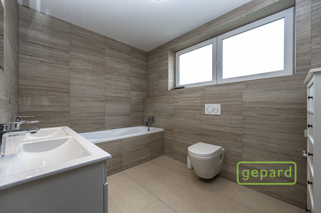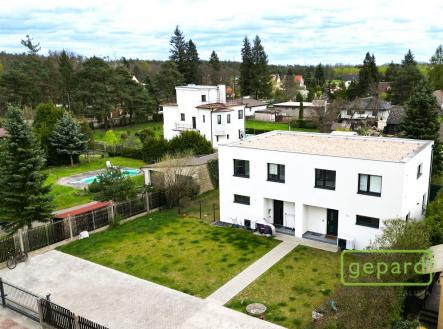 Realitní společnost Gepard reality Vám nabízí k prodeji novostavbu rodinného dvojdomu v obci Káraný. Kolaudace proběhla v roce 2022. Jedná se o polovinu dvojdomu o dispozici 5+1, zastavěná plocha 75 m2 s terasou 30 m2, celková užitná plocha v obou patrech celkem 123 m2 na pozemku 400 m² vč. parkovacího stání pro 1 auto, druhé je možné parkovat před domem. V přízemí je velká vstupní chodba s technickou místností, koupelna se sprchovým koutem a toaletou a prostorný obývací pokoj se zakázkovou kuchyňskou linkou vč. spotřebičů, dále pak jeden samostatný pokoj. V patře se nachází další tři samostatné pokoje (ložnice je s šatnou) a koupelna s vanou, dvojumyvadlem a toaletou. Všude jsou použité kvalitní materiály, velkoformátové dlažby a obklady v moderním designu. Zabezpečovací systém je od výrobce Jablotron s možností napojení na pult centrální ochrany. Vytápění je v obou patrech podlahové v kombinaci s velmi úsporným tepelným čerpadlem, které také zajišťuje ohřev užitkové teplé vody, což zajišťuje velmi nízké provozní náklady. Průkaz energetické náročnosti budovy je v kategorii B. Dům je také vybaven klimatizací. Obec Káraný se nachází pouhých 20 min jízdy autem od stanice metra B - Černý most. Ideální místo pro milovníky přírody, cyklistiky, turistiky rybaření nebo koupání. Řeka Jizera místem přímo protéká a soutok s Labem je ve vedlejší obci Lázně Toušeň. Je zde obecní úřad, moderní mateřská školka, prodejna potravin, několik restaurací, tenisové kurty, fotbalové a dětské hřiště a mnoho volnočasového vyžití. To vše v nádherné lesnaté krajině s perfektní dojezdovou vzdáleností do Prahy. Nemovitost je v současné době pronajata za zajímavých podmínek, v pronájmu lze pokračovat. Je také možné koupit celý dům (obě poloviny). Koupi je možné financovat hypotékou, kterou Vám zdarma zajistíme za nejvýhodnějších podmínek na trhu, případně pomůžeme s prodejem Vaší stávající nemovitosti a dofinancování zbývající části kupní ceny, bude-li třeba. Pro domluvení termínu prohlídky nebo další dotazy jsem k dispozici na uvedených kontaktech.