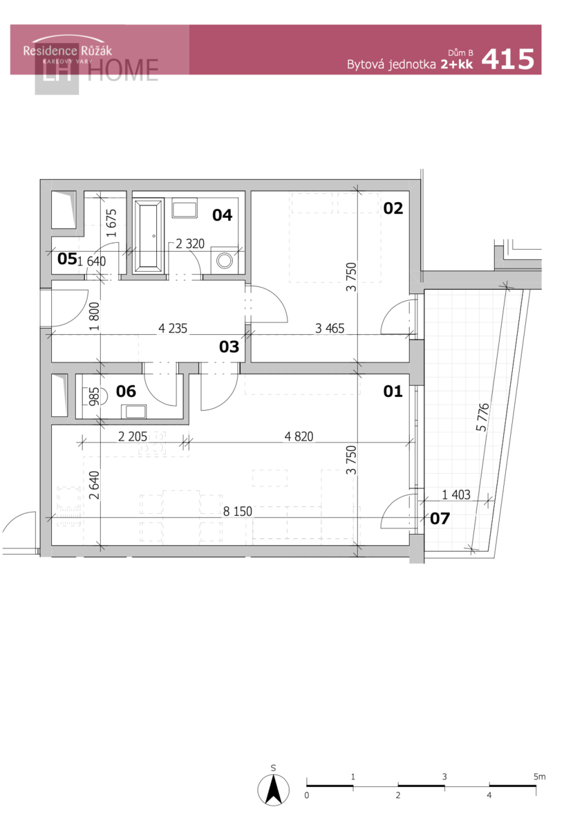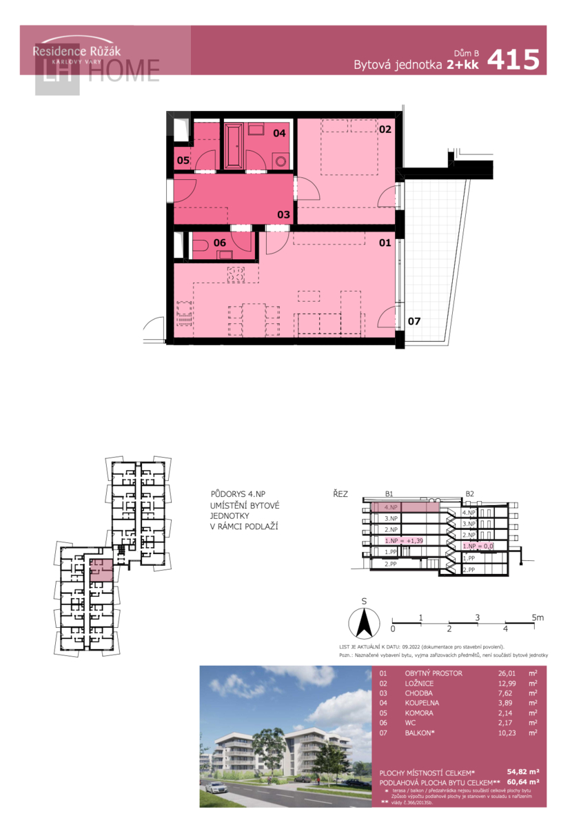 Byt 2+kk, 60,64 m2 + balkón 10,84 m2, Residence Růžák budova B