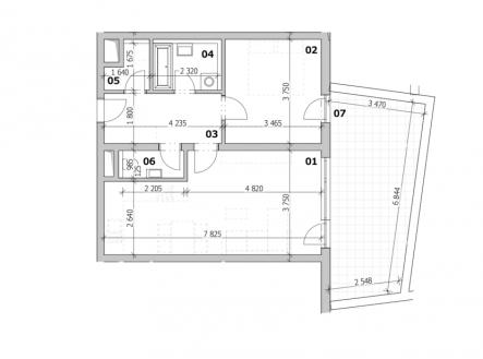 Byt 2+kk, 60,64 m2 + terasa 21,43 m2, Residence Růžák budova B