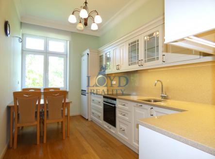 Byt s jedinečným výhledem, parkovacím stáním a dvěma balkóny v Poděbradské ulici. Nejžádanější lokalita navazující na lázeňskou i obchodní část Karlových Varů. Ničím nerušená obytná čtvrť je mimo hlavní silnici v blízkosti lázeňských lesů. Byt je situován v samostatně stojící vile "Villa Kühnl", významného architekta Rudolfa Weise. Kolem nemovitosti je oplocená zahrada se vzrostlými stromy a parkovištěm vyhrazeným pouze majitelům vily. Byt se nachází ve 2. patře. Celková nákladná rekonstrukce proběhla v r. 2018 a byla provedena ve vysoké kvalitě za použití luxusních materiálů. Z oken a balkonů je okouzlující výhled na lázeňskou část města, hotel Thermal a lázeňské vily. Byt je nadmíru slunný a má úžasnou atmosféru. Nabízí prostornou vstupní halu, obývací pokoj s jídelním koutem, dvě ložnice s balkonem, zařízenou kuchyni a elegantní koupelnu. Balkony jsou orientované každý na jinou světovou stranu. V každé místnosti je umístěna klimatizace. Byt je nabízen včetně vybavení viz fotografie. K bytu náleží větší zděný sklep v suterénu domu. Dům je v dobrém udržovaném stavu. V nadcházejícím období bude probíhat oprava fasády. Nádherná nemovitost, do které se zamilujete.